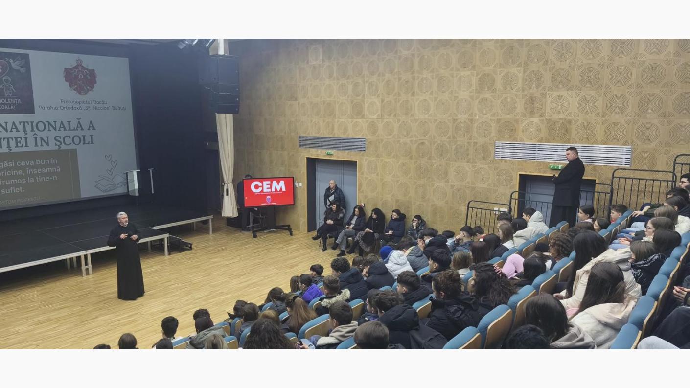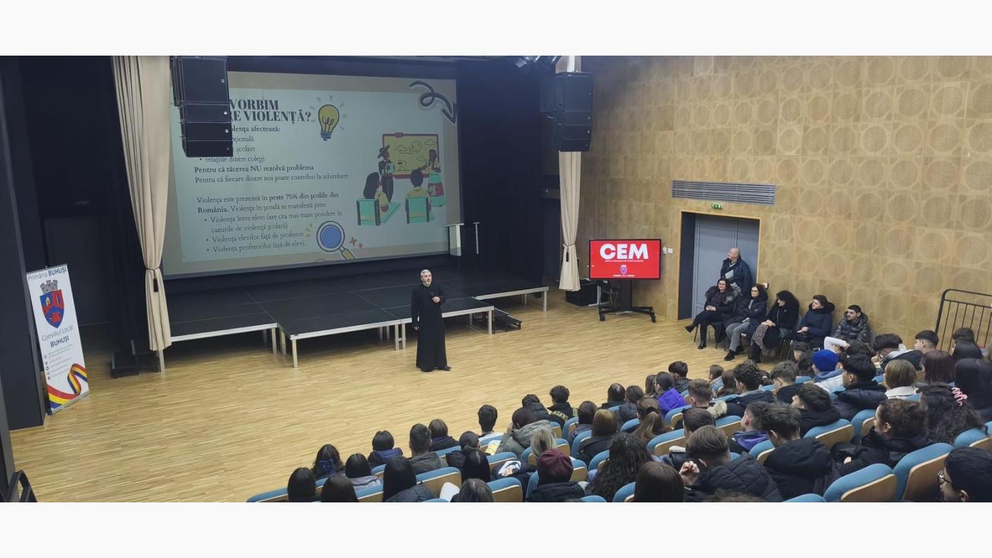 Joi, 29 ianuarie 3025, la Centrul Educațional Multifuncțional (CEM) Buhuși, a avut loc un eveniment cu profundă rezonanță spirituală și formativă, dedicat Zilei mondiale a nonviolenței în școli. Sub motto-ul: „Dacă poți găsi ceva bun în orice și-n oricine înseamnă că e tare frumos la tine-n suflet” (Ieromonah Hrisostom Filipescu), întâlnirea a reunit 160 de elevi ai Liceului Teoretic „Ion Borcea” din Buhuși, alături de profesorii lor, într-un demers de reflecție, dialog și responsabilizare.
