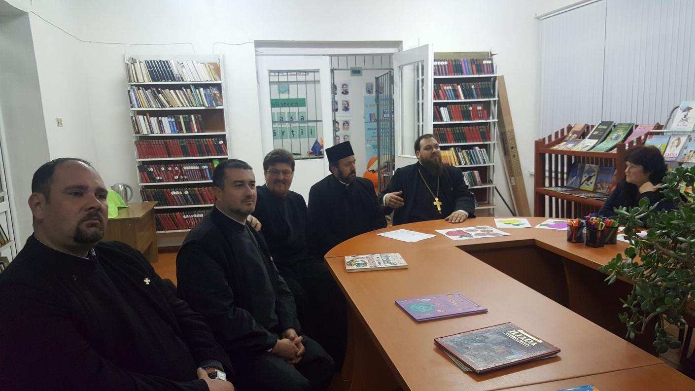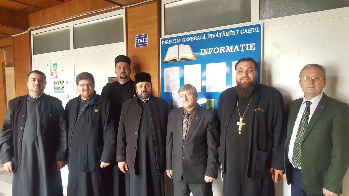 Cu acest prilej, delegația a făcut o vizită de lucru la Direcția de Învățământ Cahul, unde s-au purtat discuții cu dl Avram Micinschi- directorul general al direcției și dl Valeriu Baban- director general adjunct, privind colaborarea pe mai departe între Protoieria Sascut și Direcția de Învățământ Cahul, în vederea îmbunătățirii metodelor și condițiilor de predare a religiei în școlile arondate acestei direcții de învățământ, căreia i-a fost donat un număr de 200 manuale de religie pentru clasa a-V-a.