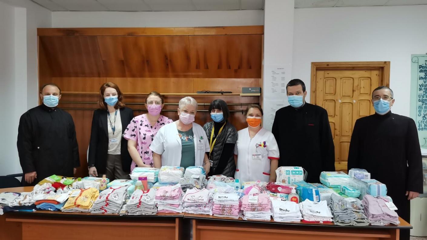 Desfășurat în Protopiatul Roman începând cu data de 8 martie a.c., proiectul "Alături de mame și copii" s-a încheiat în săptămâna pătimirilor lui Hristos. Drept urmare, astăzi, 28 aprilie, în Miercurea Mare, delegația protoieriei romașcane, sub îndrumarea pr. protopop Dan-Alexandru Antoce, a dus la Spitalul Municipal de Urgență Roman hăinuțe, pături, scutece de unică folosință, produse de igienă și curățare necesare atât pentru mame cât și pentru copii.