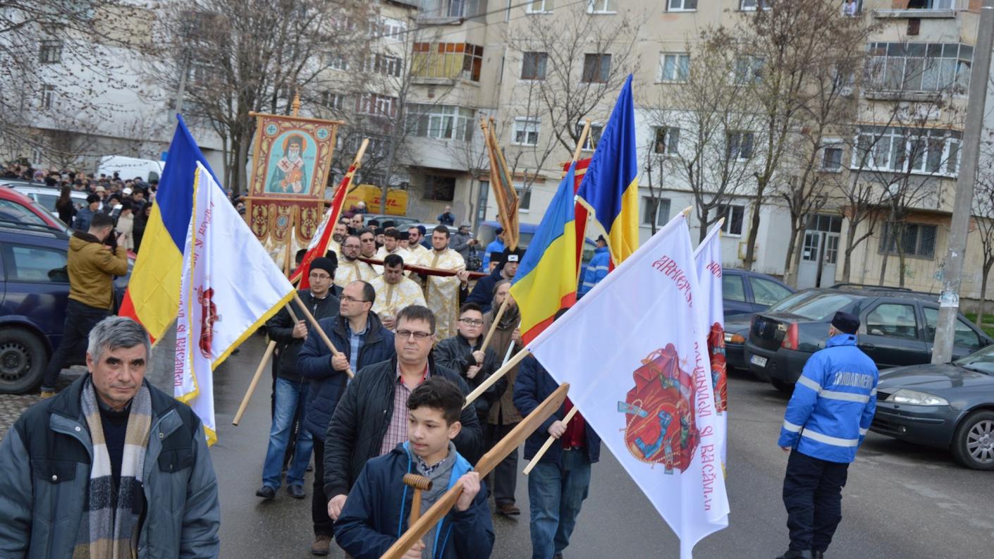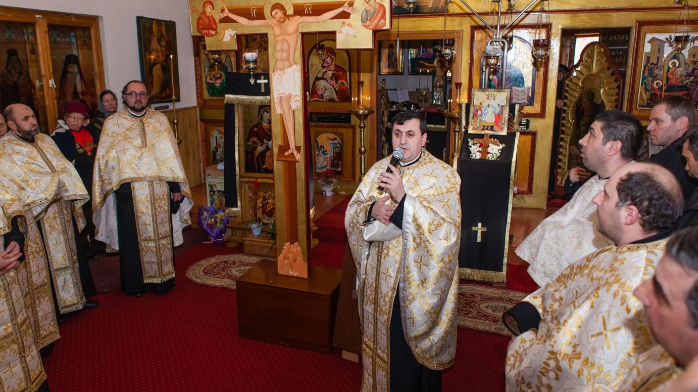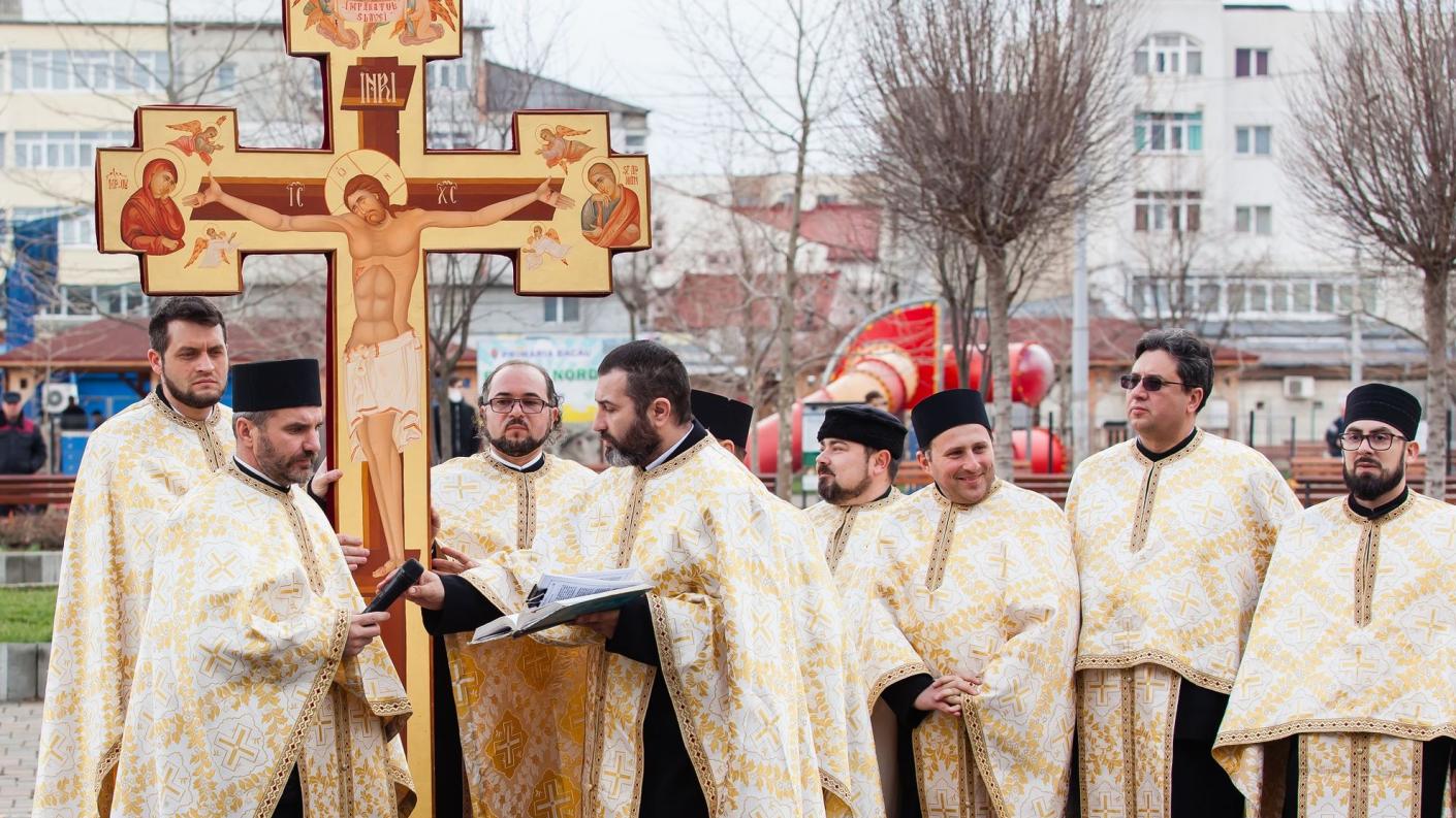 Mulțimea creștinilor a pornit în procesiune cu Sfânta Cruce însoțiți de tineri ce au interpretat cântări religioase și au purtat steagurile eparhiei și tricolore. Odată ajunși în fața bisericii „Sfinții Trei Ierarhi”, IPS Părinte Arhiepiscop Ioachim a binecuvântat pelerinii participanți și a purtat Sfânta Cruce, pe care personal a așezat-o în Sfânta Biserică, după care a înălțat rugăciuni și a rostit un cuvânt de învăţătură: