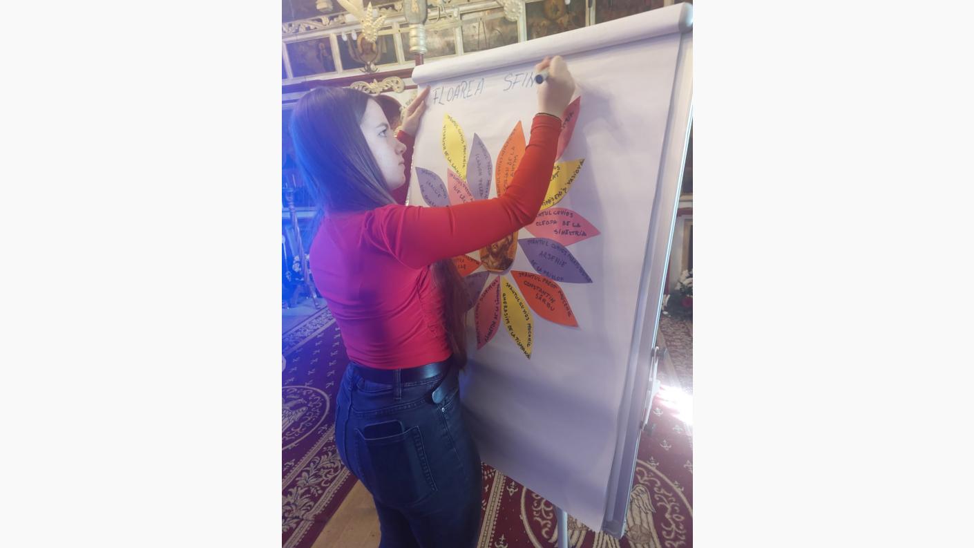 După câteva citate alese, specifice celor trei preoți mărturisitori și mari duhovnici, copiii au lucrat în final „floarea sfințeniei”, fiecare copil lucrând o petală a unei flori, în care centrul este Hristos, iar pe ea au scris numele unui sfânt din cei 16 canonizați recent.