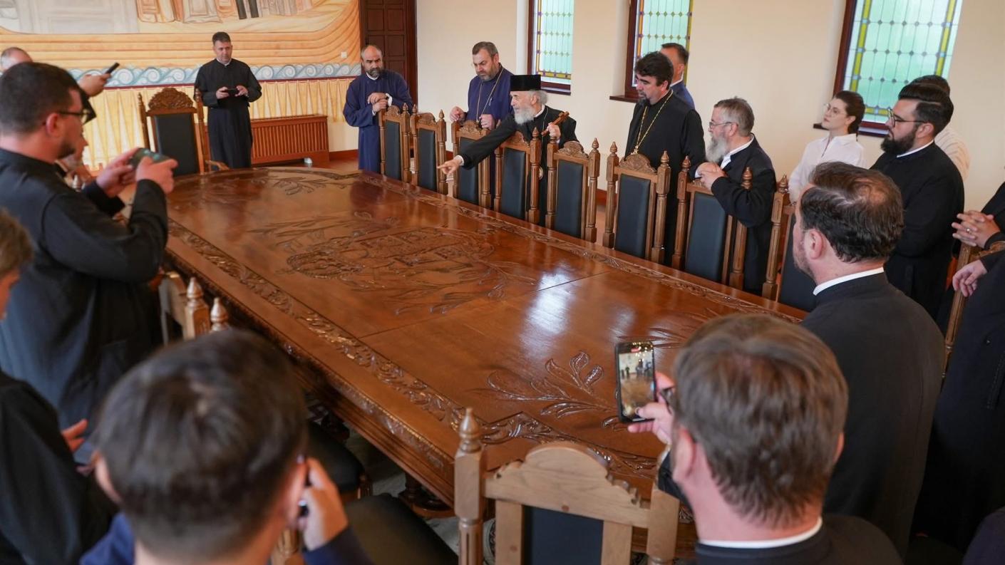 Delegația a fost întâmpinată și ghidată de Înaltpreasfințitul Părinte Casian, care a prezentat frumusețile patrimoniului cultural-religios al Eparhiei. În capela muzeului eparhial, a fost oficiată slujba de sfințire a noii racle ce adăpostește moaștele Sfântului Voievod Martir Constantin Brâncoveanu, raclă realizată la Atelierele Patriarhiei Române.