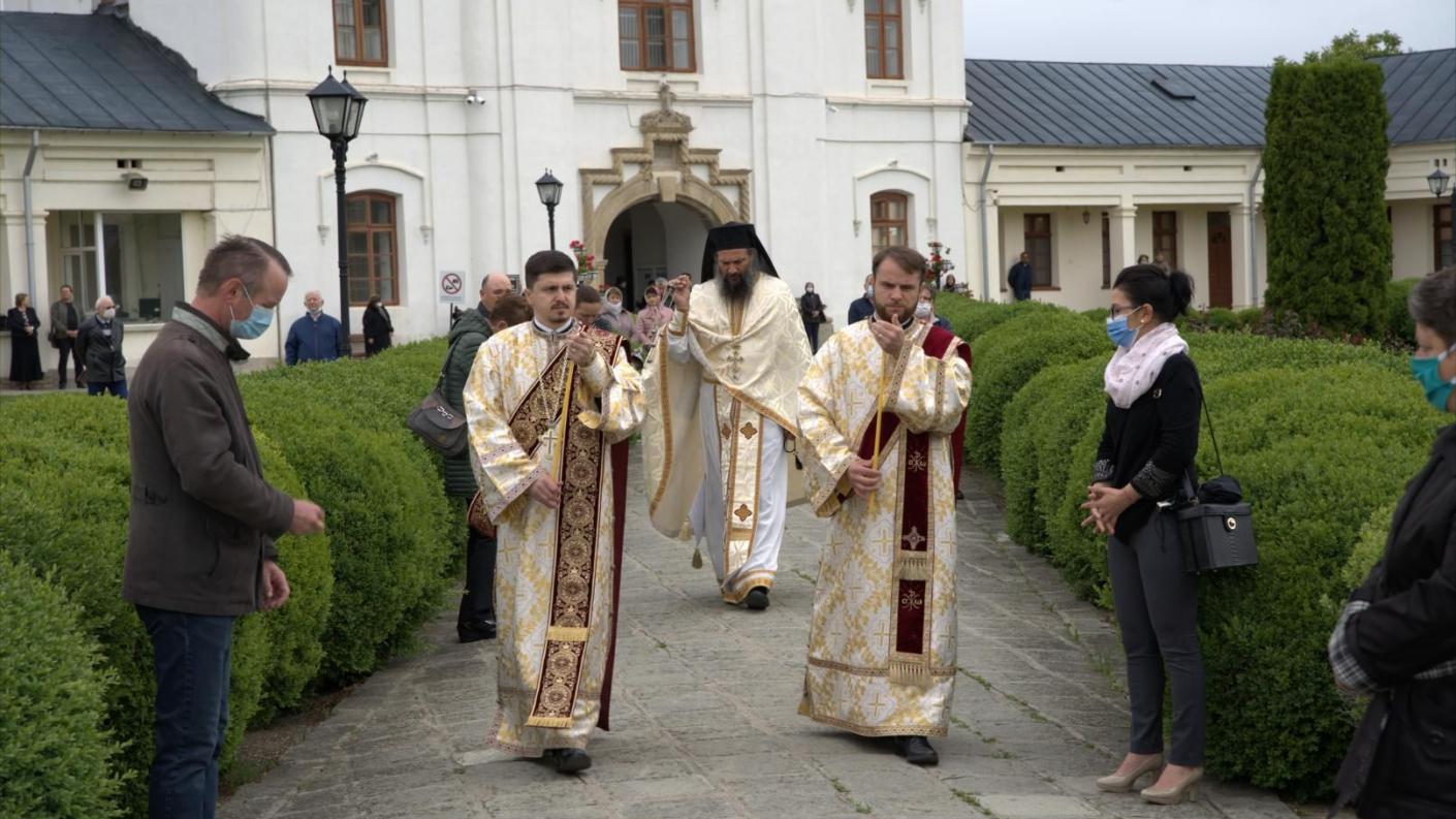 În data de 31 mai 2020, în Duminica a VII-a după Paști, cu binecuvântarea Înaltpreasfințitului Părinte Ioachim, Arhiepiscopul Romanului și Bacăului, în curtea Centrului Eparhial de la Roman a fost oficiată Sfânta Liturghie de către părintele Arhimandrit Pimen Costea, Vicar Eparhial, alături de preoți și diaconi ai catedralei. Slujba a fost oficiată în prezența credincioșilor cu respectarea îndrumărilor bisericești și a regulilor impuse de autorităţi, ca urmare a măsurilor de prevenție şi limitare a răspândirii noului coronavirus.