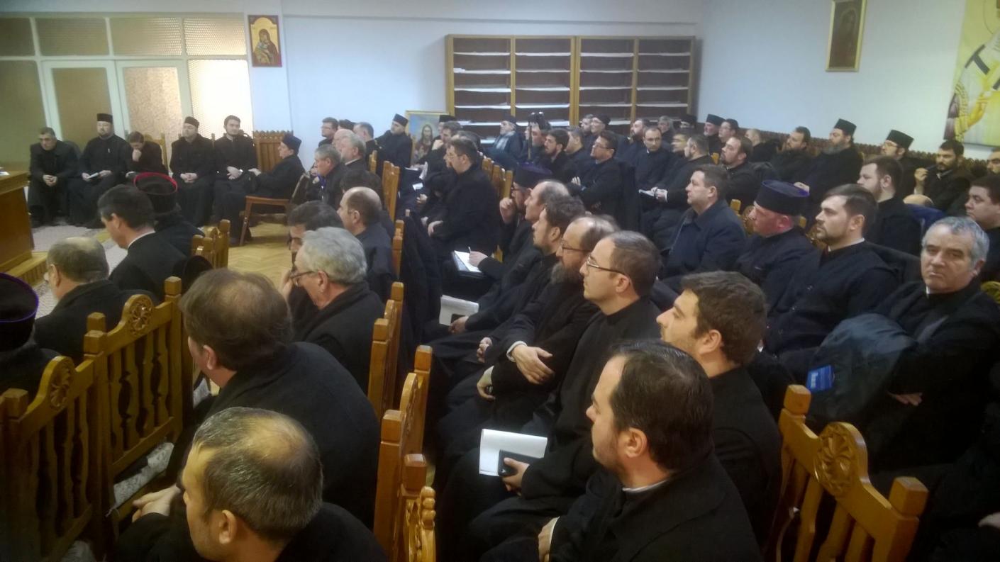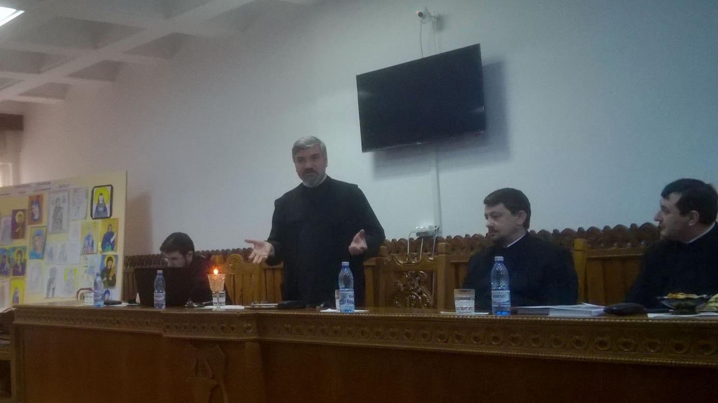 Problematica educației copiilor, concepte și concepții noi privind metodele psihologice și psihopedagogice de comunicare cu tinerii, toate acestea corelate cu învățătura sfinților Părinți ai Bisericii noastre, în mod special Sfântul Ioan Gură de Aur, au fost prezentate de părintele prof. univ. dr. Cristinel Teșu, de la Facultatea de Teologie Ortodoxă ”Dumitru Stăniloae” din Iași, preoților băcăuani în cadrul conferinței susținute astăzi, 26 ianuarie, la Protopopiatul Bacău. Întâlnirea, organizată cu binecuvântarea Înaltpreasfințitului Părinte Arhiepiscop Ioachim, în contextul ”Anului omagial al educaţiei religioase a tineretului creştin ortodox”, a constituit un veritabil curs de spiritualitate creștină prin perspectiva noilor cercetări în domeniul psihologiei, care vin să confirme rolul pe care credința, dragostea și rugăciunea le au în viața omului. Din prezentările distinsului invitat n-au lipsit nici referințele la locul și rolul pe care tehnologia modernă le are în viața tinerilor în general, și a copiilor în mod special, precum și la provocările la care părinții trupești și duhovnicești trebuie să le facă față în aceste condiții pentru a ține aproape de Biserică tânăra generație. Delegat din partea ierarhului la acest eveniment a fost preotul Alexandru Zamfir, consilier administrativ al Centrului Eparhial de la Roman, moderatorul conferinței fiind preotul protopop Costică Busuioc care, în cuvântul său, a mulțumit distinsului profesor universitar pentru prezența în mijlocul clerului băcăuan, acest festin duhovnicesc constituind o bucurie pentru toți slujitorii sfintelor altare din această protoierie.