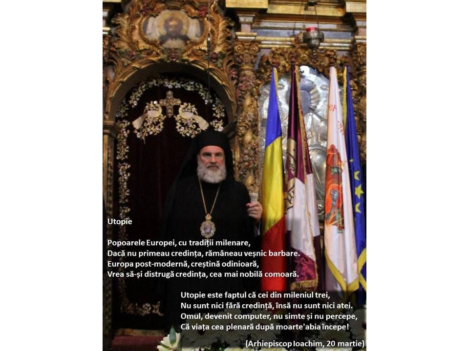 Utopie   Popoarele Europei, cu tradiţii milenare, Dacă nu primeau credinţa, rămâneau veşnic barbare. Europa post-modernă, creştină...