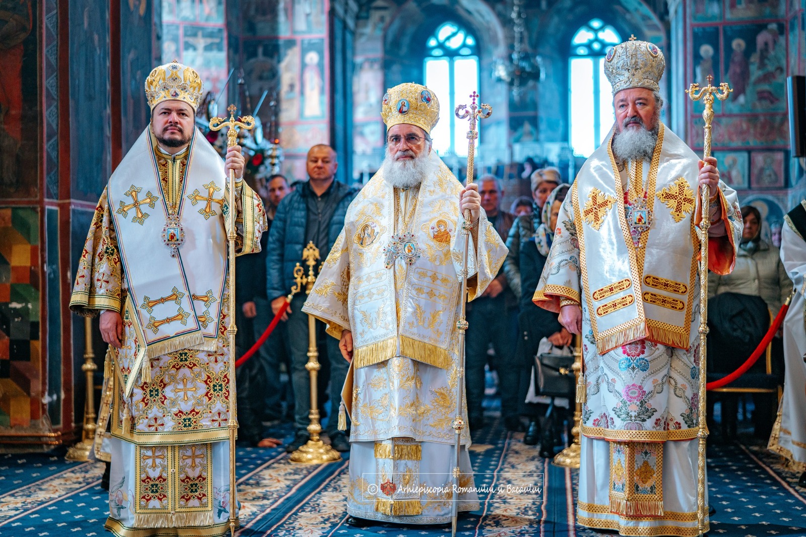 Treime de arhierei, în slujire euharistică, la Catedrala din Roman