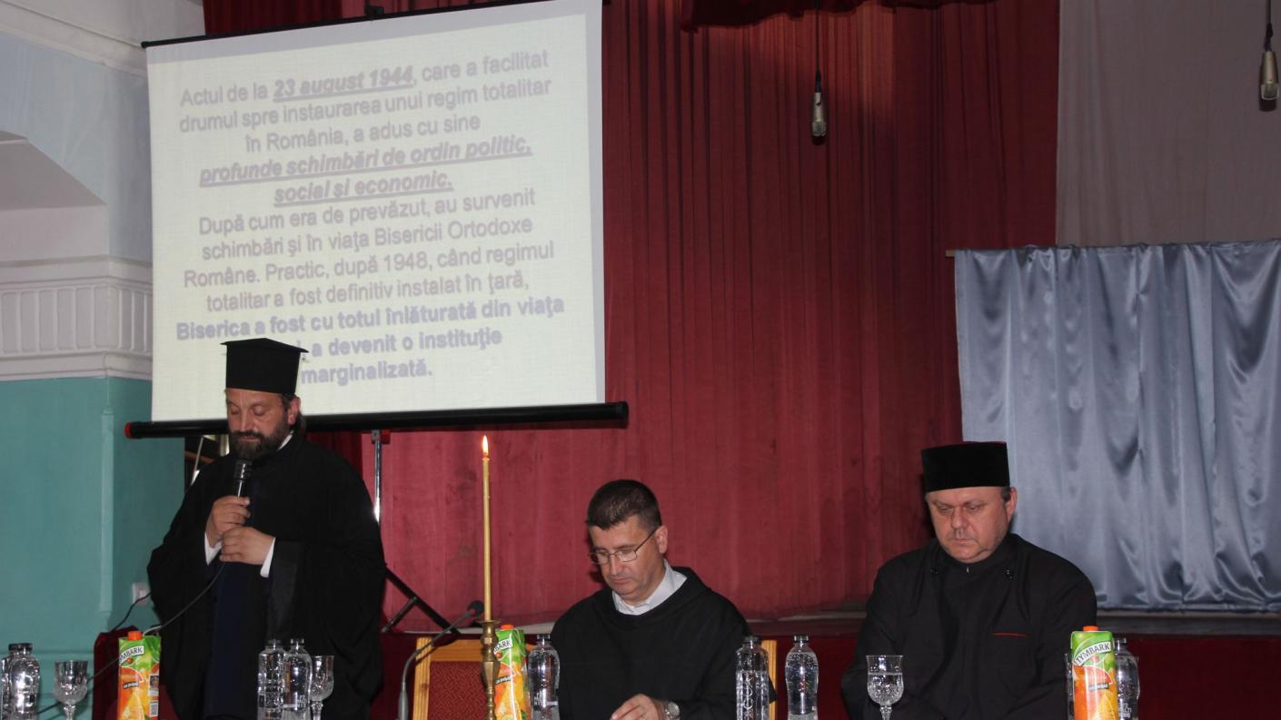 Un eveniment cultural-educațional deosebit a avut loc astăzi, 10 iunie, începând cu ora 17.00, la Liceul Teologic ”Episcop Melchisedec” din Roman. Sub genericul ”Preoţi ortodocşi – candele aprinse în temniţele comuniste”, oameni de cultură, profesori, preoţi și elevi au umplut sala amfiteatru a instituției de învățământ romașcane, cu toții doritori să asculte relatări despre viaţa şi suferinţele slujitorilor sfintelor altare în temniţele comuniste. Întâlnirea inclusă în cadrul seriei ”Martiri şi mărturisitori ai neamului românesc (1948 – 1989)” a fost deschisă de Înaltpreasfințitul Părinte Arhiepiscop Ioachim, care a evidențiat importanța acestui eveniment pentru viața Bisericii și pentru istoria recentă a neamului românesc, a subliniat suferința Bisericii din perioada de tristă amintire, aducând în memoria celor prezenți nume de referință ale intelectualității românești ce au fost încarcerate și care au fost lumină și călăuze pentru generația de atunci a României, făcând în același timp o paralelă între perioada de început a Creștinismului și persecuțiile contemporane ale creștinilor. „În această lume parcelizată, îndoielnică și instabilă, este bine să facem anamneză pentru faptul că amnezia se instalează odată cu trecerea timpului. Binecuvântăm această activitate cu speranța că mărturisirile din această seară vor spune ceva și contemporanilor. Să nu-i uităm pe cei dinainte, dar să nu ignorăm prezentul”, a spus Înaltpreasfinția Sa. În acest cadrul solemn, Înaltpreasfințitul Ioachim a premiat elevii liceului teologic care s-au remarcat în acest an școlar la concursuri naționale și internaționale, oferindu-le premii constând în bani, cărți, CD-uri și icoane. La rândul său, părintele Damian Pătrașcu, Prorectorul Institutului Franciscan, a vorbit celor prezenți despre importanța mărturisirii faptelor celor ce au suferit în temniță pentru ca noi astăzi să ne putem exprima liber. Apoi, cei prezenți au ascultat prelegerile susținute de arhimandritul Andrei Ioniţă, ecleziarhul Catedralei Arhiepiscopale “Sfânta Cuvioasă Parascheva”, care a prezentat o imagine generală a persecuției din România acelor vremuri, a vorbit despre decretul de tristă mintire și prigoana monahismului românesc, chinurile la care erau supuși cei întemnițați, făcând și o scurtă trecere în revistă a datelor statistice care și astăzi anunță persecutarea creștinilor în țările din Orientul îndepărtat. Părintele Nicolae Hurjui a captivat atenția auditoriului prezentând, cu mărturii din arhivele statului, viața și suferințele Episcopului Grigorie Leu, care în puțini ani de episcopat a scris o pagină importantă a istoriei Bisericii Ortodoxe Române apărând valorile Ortodoxiei.
