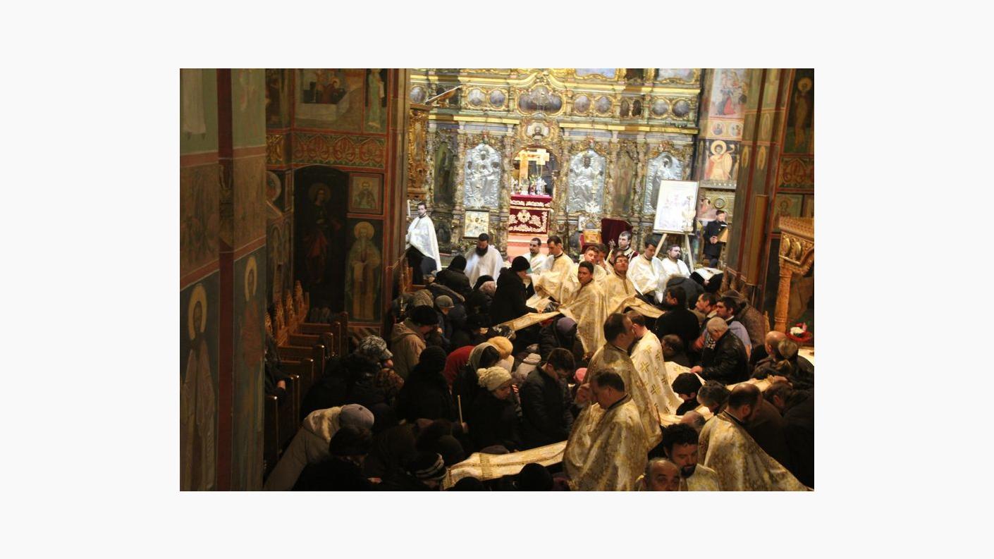 Racla a fost adusă la Roman miercuri, 5 martie, la ora 18.00, fiind întâmpinată de Preasfințitul Părinte Ioachim Băcăuanul, înconjurat de un impresionant sobor de preoți și diaconi, dimpreună cu numeroși credincioși. Purtând făclii și lumânări în mâini, clerul și credincioșii au mers în procesiune în jurul catedralei, apoi sfintele moaște au fost expuse spre închinare în Agheasmatarul din curtea Centrului eparhial. Aici, ierarhul a cântat împreună cu preoții și credincioșii prezenți troparul Cuvioasei Parascheva, precum și icoase și condace din Acatistul Sfinților Români și al Tuturor Sfinților. Festinul duhovnicesc a continuat apoi, în sfântul lăcaș, unde Preasfinția Sa, împreună cu preoții prezenți, a oficiat Taina Sfântului Maslu, iar la sfârșit a rostit un cuvânt de învățătură.