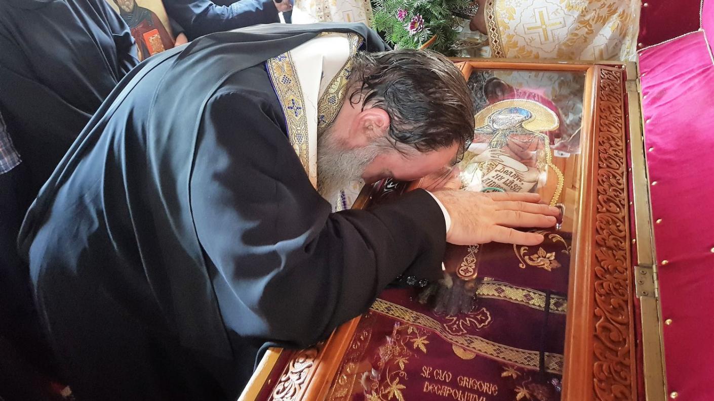 Ajunse pe meleaguri moldave pentru întâia oară, în cele peste cinci secole de când se află pe teritoriul țării noastre, sfintele moaște au fost aduse de o delegație condusă de Preasfințitul Emilian Lovișteanul, episcop-vicar al Arhiepiscopiei Râmnicului, delegat al ÎPS Arhiepiscop Varsanufie, dimpreună cu un sobor de maici de la cunoscutul așezământ monahal vâlcean. ”În numele clerului și credincioșilor acestei urbe și ai eparhiei noastre spunem într-un glas: Bine ați venit, Sfinte Grigorie, în inima orașului! Este o zi istorică pentru Bacău și pentru întreaga Moldovă”, a declarat ÎPS Arhiepiscop Ioachim, după ce sfintele odoare au fost așezate spre închinare într-un baldachin amplasat în fața bisericii. ”Astăzi ne bucurăm întru Duhul Sfânt, pentru că a venit la noi Sfântul Grigorie Decapolitul, unul dintre cei mai venerați sfinți din cuprinsul Patriarhiei Române. După demersurile pe care l-am făcut la autoritățile bisericești superioare, la Preafericitul Părinte Patriarh Daniel și la Înaltpreasfințitul Arhiepiscop Varsanufie, ni s-a împlinit cererea, iar rugăciunile frățiilor voastre au atras ca un magnet sfintele moaște taumaturgice, pentru că de-a lungul vremii s-au consemnat multe minuni săvârșite asupra celor care s-au rugat cu frică de Dumnezeu și credință Sfântului Grigorie. Acest mare și cinstit cuvios al Bisericii noastre aduce mângâiere, sănătate și bucurie duhovnicească. Tot astăzi facem joncțiune duhovnicească cu maicile și călugării din acele părți ale țării, căci zona Vâlcei și Moldova sunt polii spiritualității românești”, a mai spus ierarhul, care i-a îndemnat pe credincioși să se roage conștientizând importanța comuniunii cu sfinții și prietenii lui Dumnezeu. ”Când vă veți apleca fruntea și veți săruta sfintele odoare să vă gândiți că intrați în comuniune cu însuși sfântul, cu toți pelerinii care și-au îndreptat pașii la mănăstirea Bistrița și au obținut binefaceri de la Sfântul Grigorie”, a menționat Inaltpreasfințitul Ioachim. La rândul său, impresionat de mulțimea credincioșilor prezenți la acest moment de rugăciune și bucurie duhovnicească, Preasfințitul Emilian Lovișteanu a adresat mesajul din partea chiriarhului Arhiepiscopiei Râmnicului și a vorbit despre viața Sfântului Grigorie Decapolitul, care a trăit între secolele VIII-IX, fiind un apărător al ortodoxiei în fața ereziei iconoclaste. ”A fost înzestrat cu darul facerii de minuni, iar trupul lui nu a putrezit, devenind sfinte moaște, ca o mărturie în mijlocul creștinătății că cinstirea sfintelor icoane și a sfintelor moaște reprezintă un adevăr de credință, reprezintă ceea ce Dumnezeu ne cere, să-L cinstim pe El și pe sfinții Lui”, a spus PS Emilian. În ceea ce privește prezența în Țara Românească, sfintele sale moaște au fost aduse în așezământul monahal din Oltenia în anul 1497, când, în Moldova, la Neamț era sfințită marea biserică a ctitoriei Binecredinciosului Voievod Ștefan cel Mare și Sfânt. ”În ultimii ani ai secolului al XV-lea, banul Barbu Craiovescu a adus sfintele odoare la mănăstirea Bistrița din Vâlcea, ctitoria familiei sale, acolo unde el însuși s-a călugărit sub numele de Pahomie”, a mai adăugat reprezentantul Arhiepiscopiei Vâlcei.