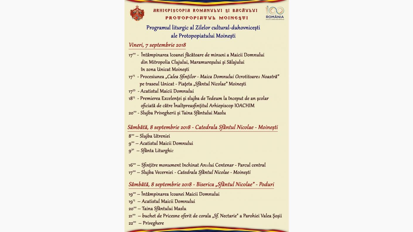 * Programul liturgic detaliat al Zilelor cultural-duhovnicești ale Protopopiatului Moinești poate fi consultat în imaginile care ilustrează prezentul articol.