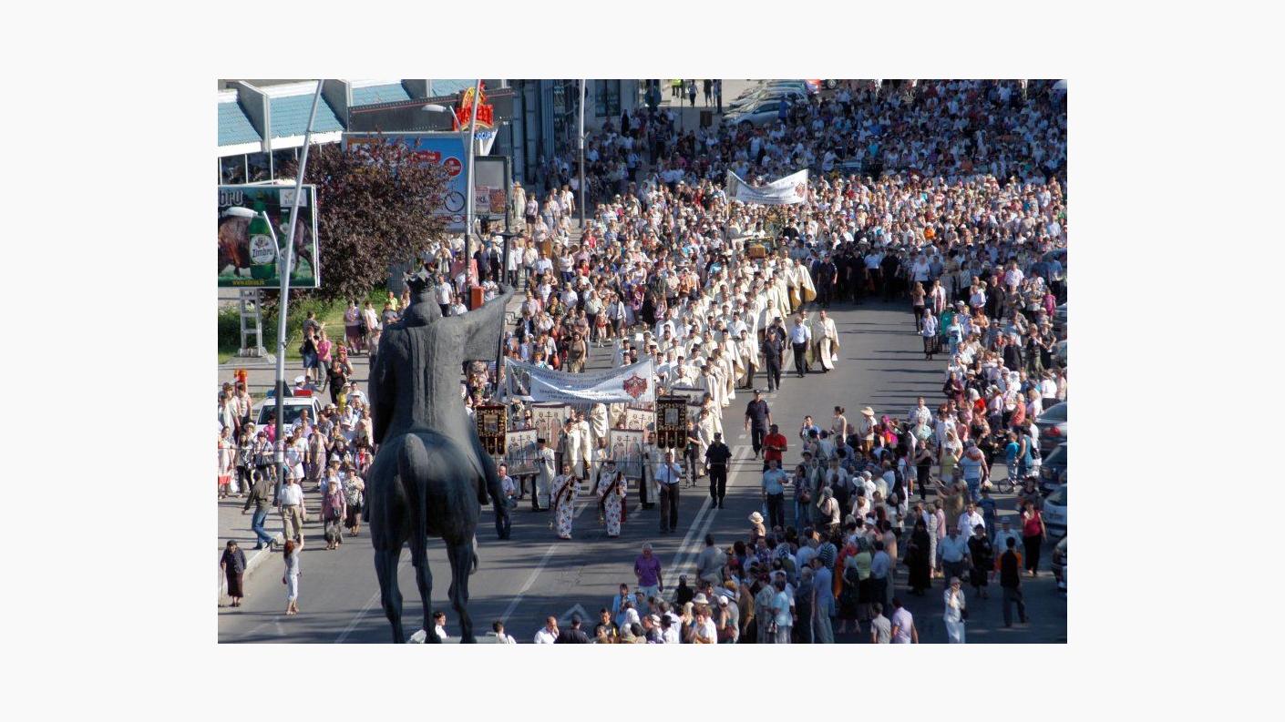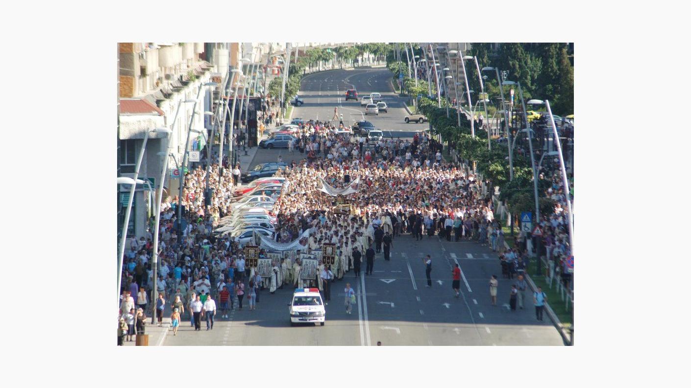 Aproximativ 10.000 de credincioși au participat astăzi, 19 mai, începând cu orele 17.00, la cea mai impresionantă procesiune organizată în municipiul Bacău, în contextul serbării Anului Omagial al Sfinților Împărați Constantin și Elena.