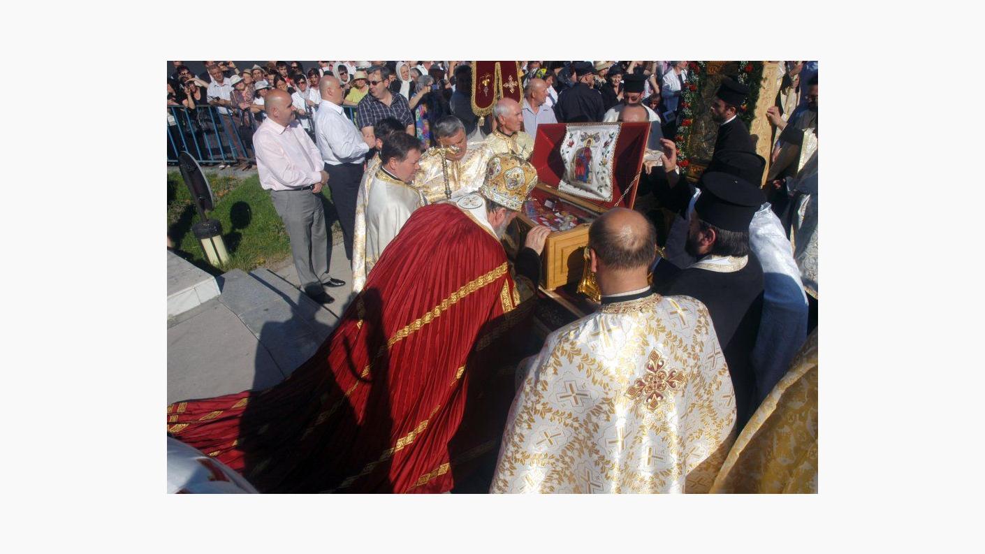 Procesiunea s-a încheiat la biserica ”Sfinții Împărați Constantin și Elena”, unde, au fost depuse spre închinarea credincioșilor cele două icoane făcătoare de minuni, precum și sfintele moaște de la Catedrala din Roman. Bucuria duhovnicească a zilei a continuat cu slujba Litiei, oficiată de PS Episcop Ioachim, răspunsurile la strană fiind date de corala ”Episcop Melchisedec” a Protopopiatului Bacău, care a oferit și un scurt concert de muzică religioasă, urmat de un altul susținut de corala bisericii ”Sf. Împărați”.