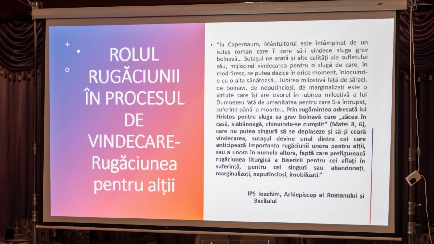Evenimentul a inclus o secțiune academică deosebit de valoroasă, în cadrul căreia au fost susținute prelegeri de personalități marcante din domeniul teologic, medical, sociologic si antroplogic. Fiecare dintre intervenții a adus o perspectivă profundă asupra tematicii pastorației și a grijii față de bolnavi, contribuind la îmbogățirea dialogului interdisciplinar dintre Biserică și Știință.