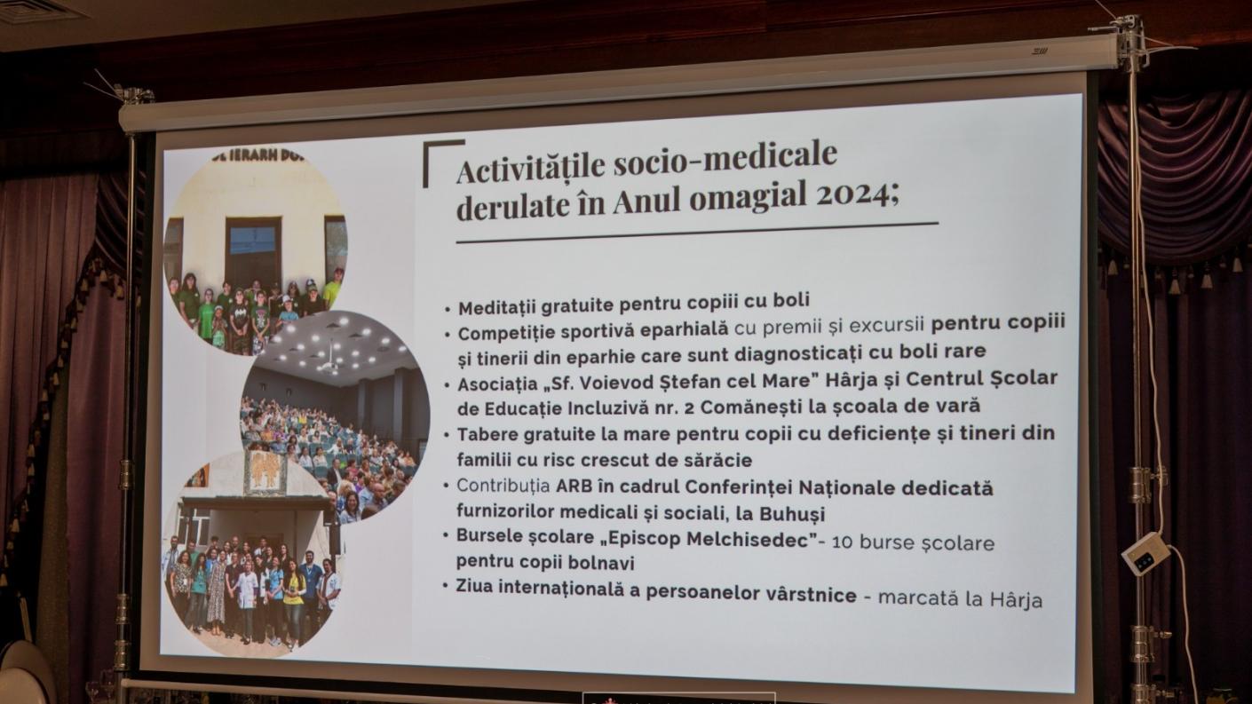 Părintele Ilarion Mâță a prezentat Raportul de activitate al Sectorului Social-Filantropic și de Misiune, subliniind impactul proiectelor Anului magial, aportul filantropiei în domeniul misionar și importanța conclucrării dintre instituțiile publice și structurile filantropice ale eparhiei prin proiectele sociale. O parte dintre statisticile prezentate au evidențiat următoarele cifre: