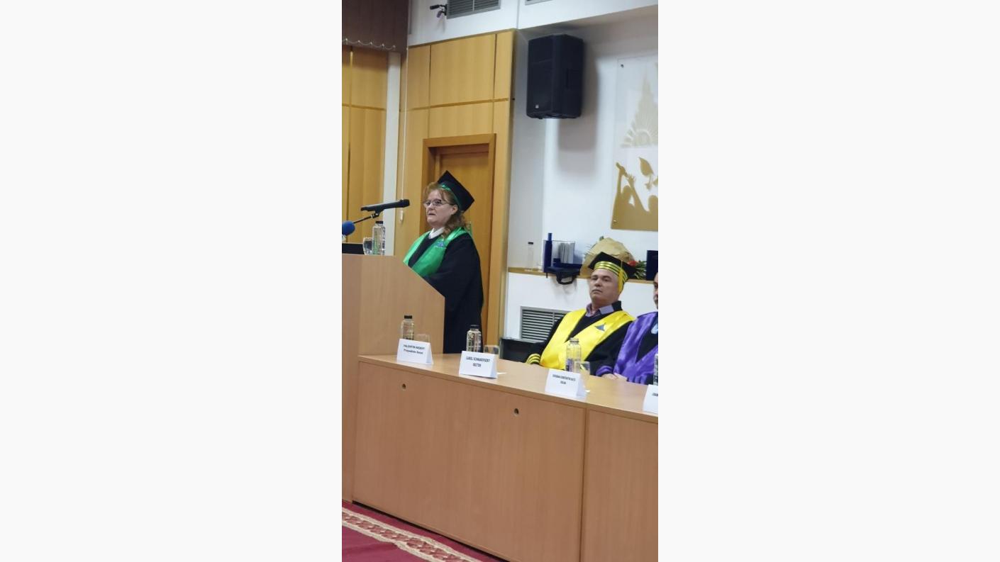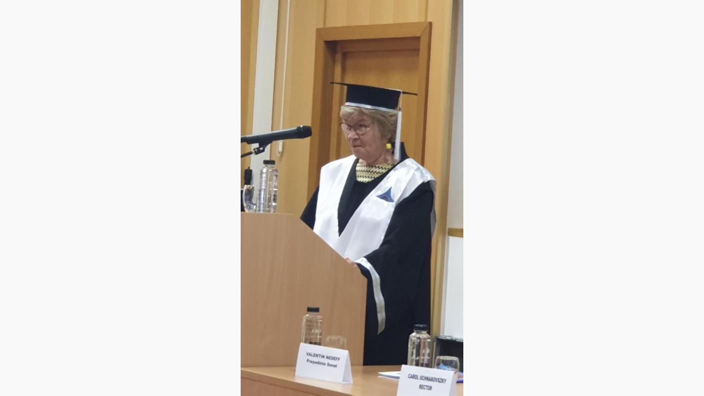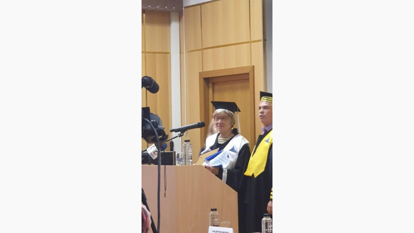 Conf.univ.dr. Gabriela Raveica a citit Laudatio, în care a sintetizat activitatea bogată a prof.univ.dr. Johanna Elisabeth van Bruggen.