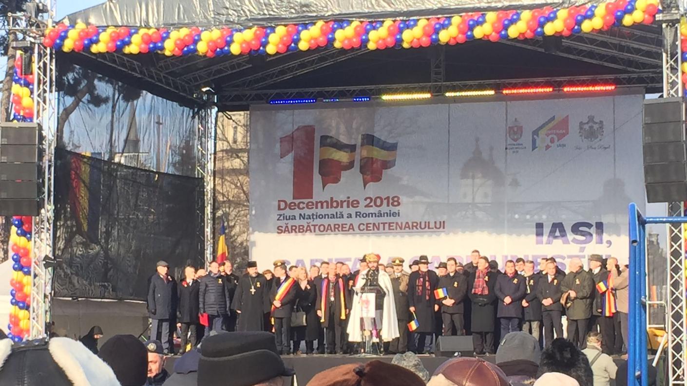 Aici, s-a luat parte la ceremonialul organizat de instituțiile ieșene dedicat zilei de 1 Decembrie, tinerii tîrgocneni asistând cu entuziasm atât la momentele solemne, cât și la defilarea trupelor de militari și a arsenalului tehnic aflat în dotare. Ei au participat activ la sărbătoare, având fiecare steaguri tricolore, formând o horă cu aceste drapele, intonând Imnul de stat și al unirii, fapt ce a fost remarcat și de autoritățile prezente în piațeta Palatului.