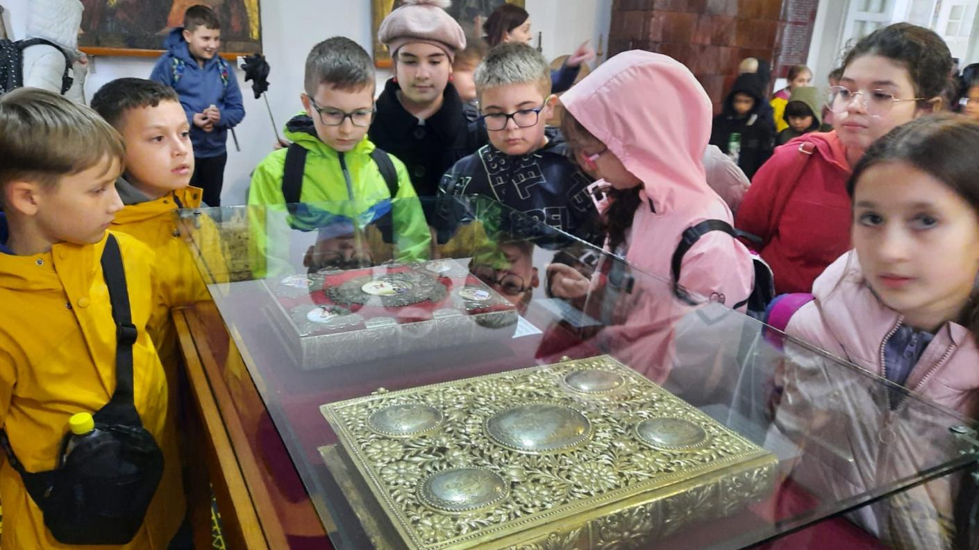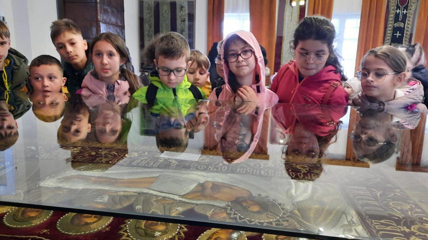 Maica Stareță, Stavrofora Iosefina, ne aștepta în curte, în ploaie, încurajându-ne și spunând că suntem bine veniți și că ne așteaptă un program atrăgător. Copiii s-au închinat în Biserica „Adormirii Maicii Domnului” unde au cântat „Hristos a Înviat!” și au spus poezii specifice Praznicului Învierii. Au vizitat muzeele mănăstirii, pangarele și magazinele cu obiecte bisericești de unde au cumpărat frumoase suveniruri.