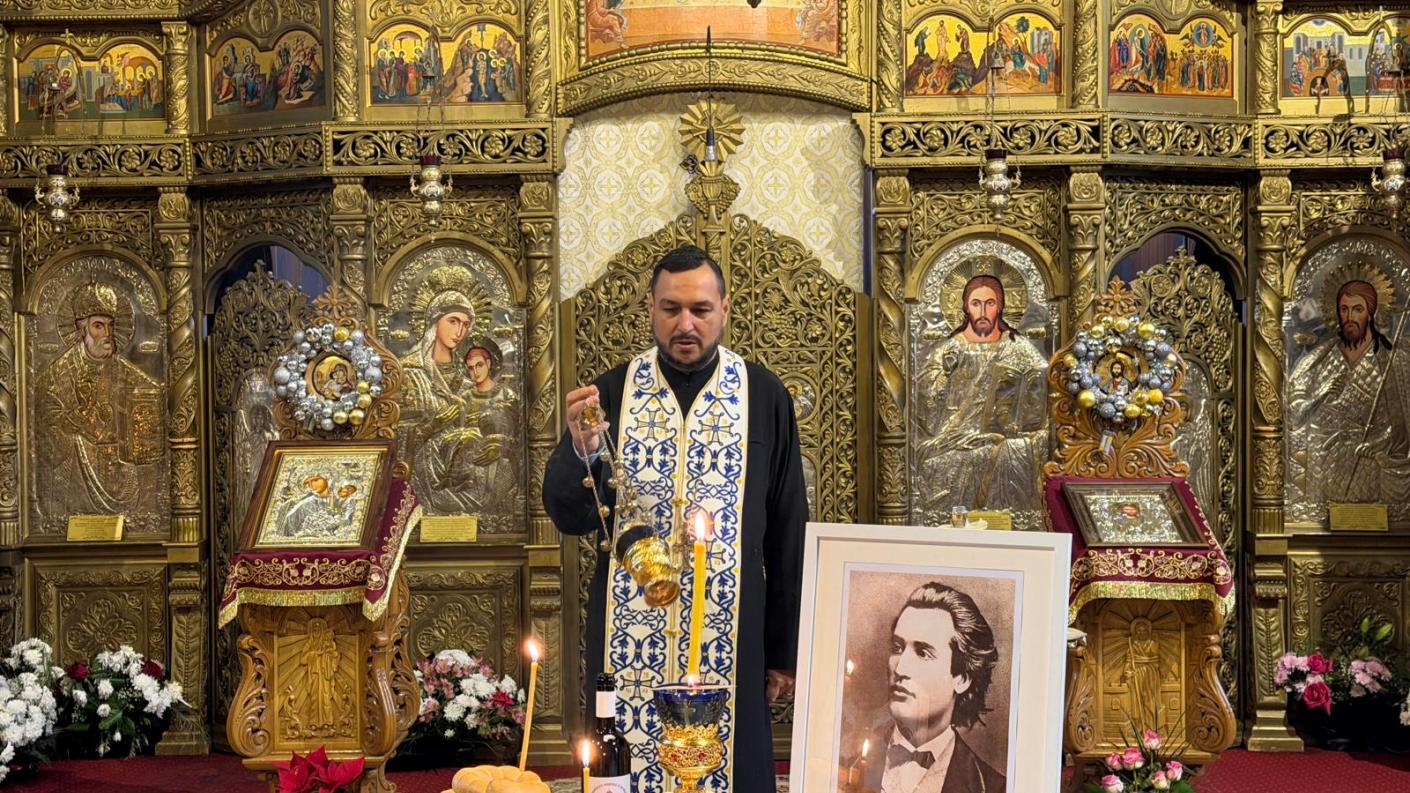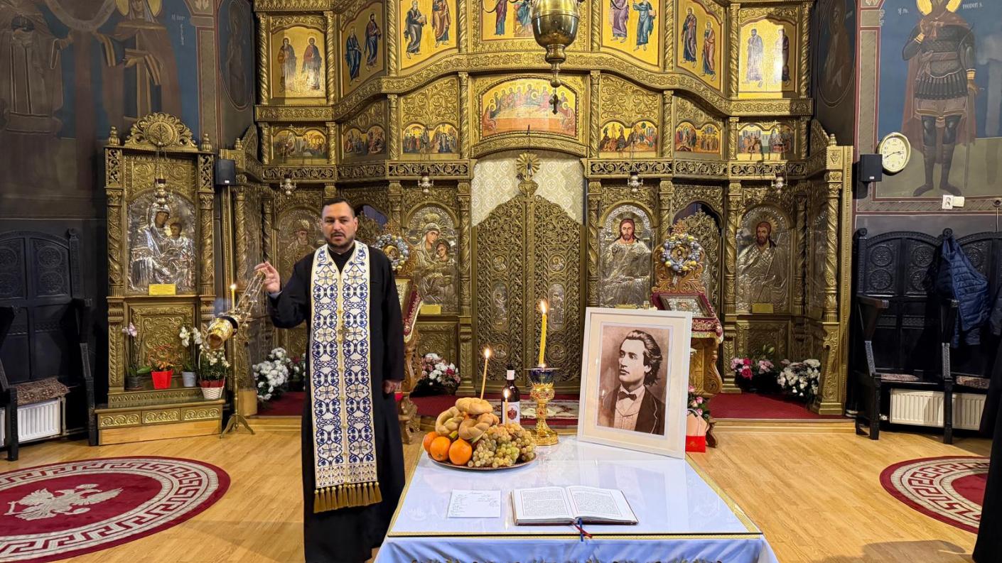 Prima parte a întâlnirii s-a desfășurat în biserică, unde, în fața soborului și a preoților prezenți, a fost săvârșit un parastas în cinstea marelui poet național Mihai Eminescu cu prilejul Zilei Culturii Naționale, celebrată în România în fiecare an la 15 ianuarie, dată în care se marchează și ziua nașterii poetului (1850–1889).