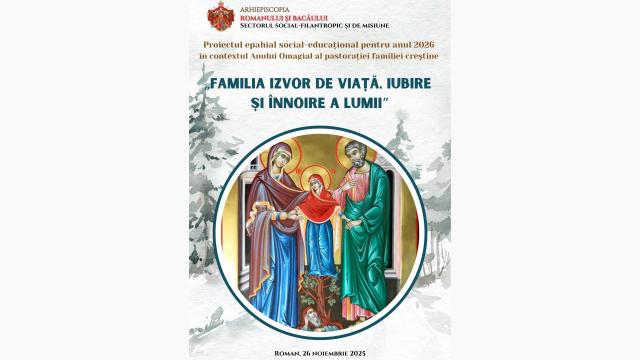 Cu binecuvântarea Înaltpreasfințitului Părinte Ioachim, Arhiepiscopul Romanului și Bacăului, în anul 2026 Sectorul social-filantropic și Misionar, va desfășura proiectul social-educațional „Familia izvor de viață, iubire și înnoire a lumii”, inițiativă dedicată Anului Omagial al pastorației familiei creștine. Într-o perioadă marcată de provocări sociale, fragilități economice și transformări culturale rapide, acest demers își propune să întărească rolul familiei ca spațiu privilegiat al credinței, comuniunii și formării caracterului. Inspirat de cuvântul Sfântului Nicolae Velimirovici – „Familia este locul unde omul devine icoană vie a iubirii lui Dumnezeu” –, proiectul urmărește susținerea familiilor vulnerabile, cultivarea responsabilității parentale și promovarea unei educații creștine autentice. Prin activități social-filantropice, misionare și culturale, Eparhia reafirmă importanța familiei ca temelie a unei societăți sănătoase și bine ancorate în valorile Evangheliei.