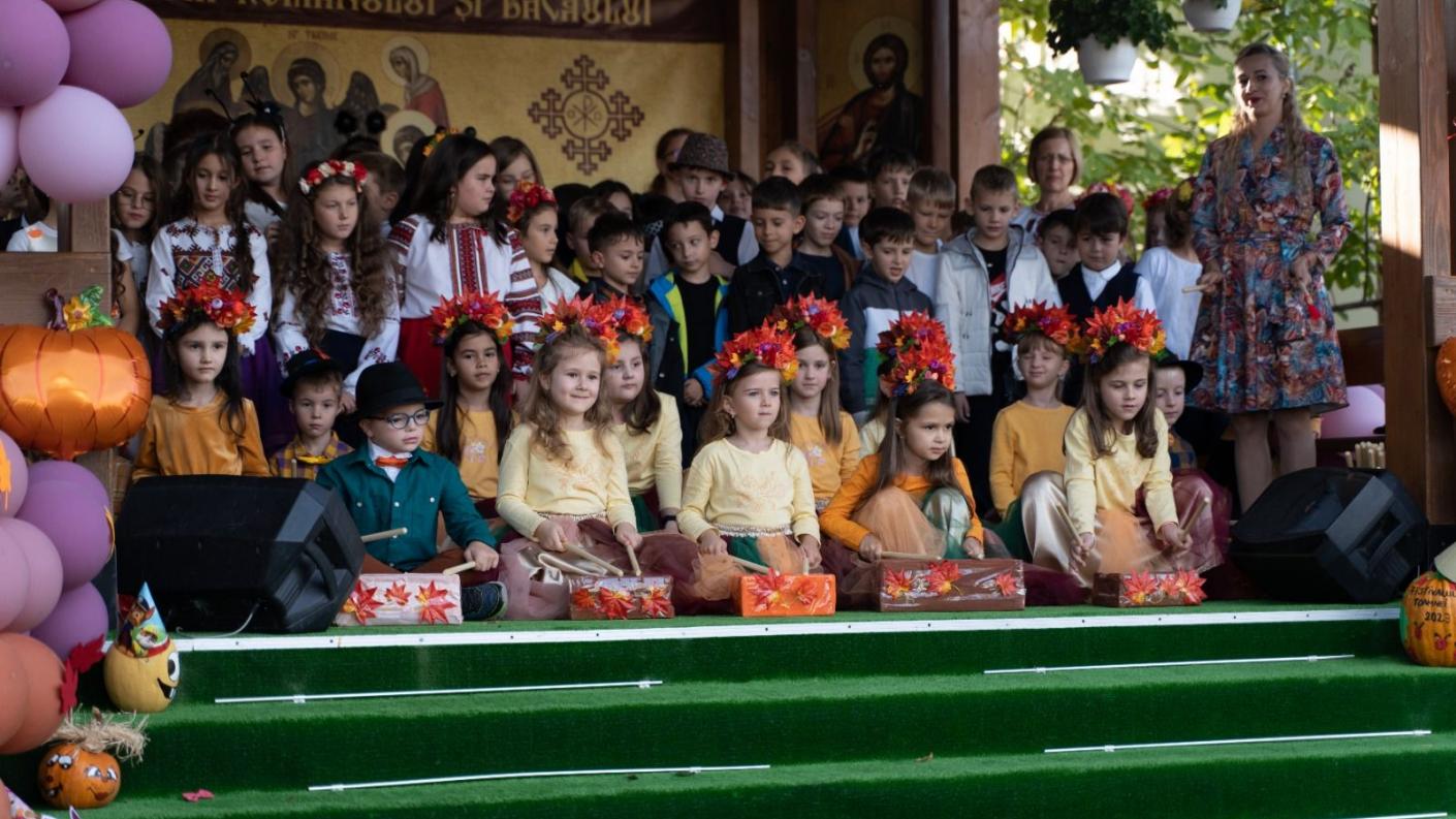 Prima parte a evenimentului a constat într-un program artistic dedicat anotimpului toamna, prezentat de grupele mijlocie și mare ale Grădiniței cu Program Prelungit „Episcop Melchisedec” și de elevii Școlii Primare Mușatinii. Cei mici au fost răsplătiți cu dulciuri ascunse în piniate prinse în arborii parcului.
