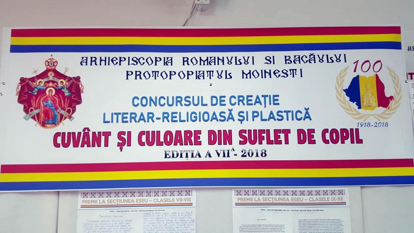 Cea de a VII-a ediție a Concursului de creație plastică și literar-religioasă „Cuvânt și culoare din suflet de copil”, organizat în Protopopiatul Moinești cu binecuvântarea Înaltpreasfințitului Părinte IOACHIM, Arhiepiscopul Romanului și Bacăului, a ajuns la final.