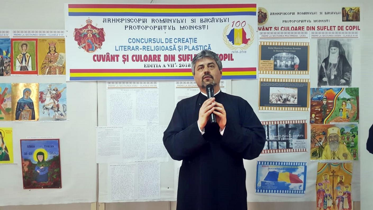 Moderatorul evenimentului, părintele Ovidiu Hereș, responsabilul cu cateheza și activitățile cu tinerii în Protopopiatul Moinești, a urat bun venit tuturor celor prezenți la festivitatea de premiere a Concursului de creație plastică și literar-religioasă „Cuvânt și culoare din suflet de copil”, totodată felicitând pe toți cei ce au participat cu lucrări la acest concurs, chiar dacă nu s-au clasat pe locurile câștigătoare.