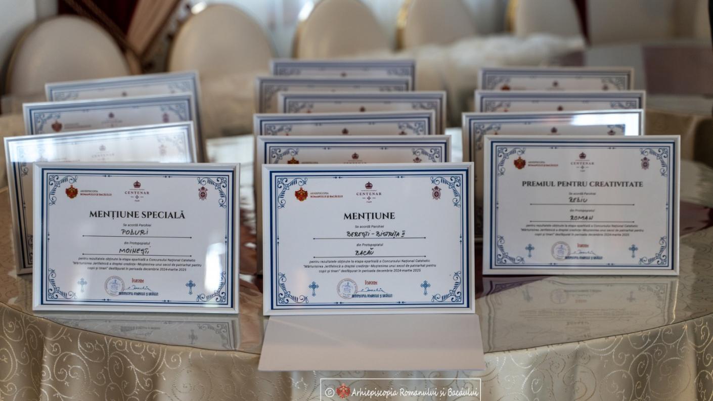 În cadrul Concursul Național Catehetic, implementat de Arhiepiscopia Romanului și Bacăului, s-au înscris 107 parohii, iar dintre acestea 15 au ajuns în faza finală. Cu binecuvântarea Înaltpreasfințitul Părinte Ioachim, Arhiepiscopul Romanului și Bacăului, pe lângă cele trei premii mari și cele patru mențiuni principale, fiecare grup care s-a distins într-un anumit fel sau altul prin activitatea depusă a primit un premiu special, în semn de prețuire și binecuvântare și prin care s-a dorit încununarea muncii și a activității acestora.