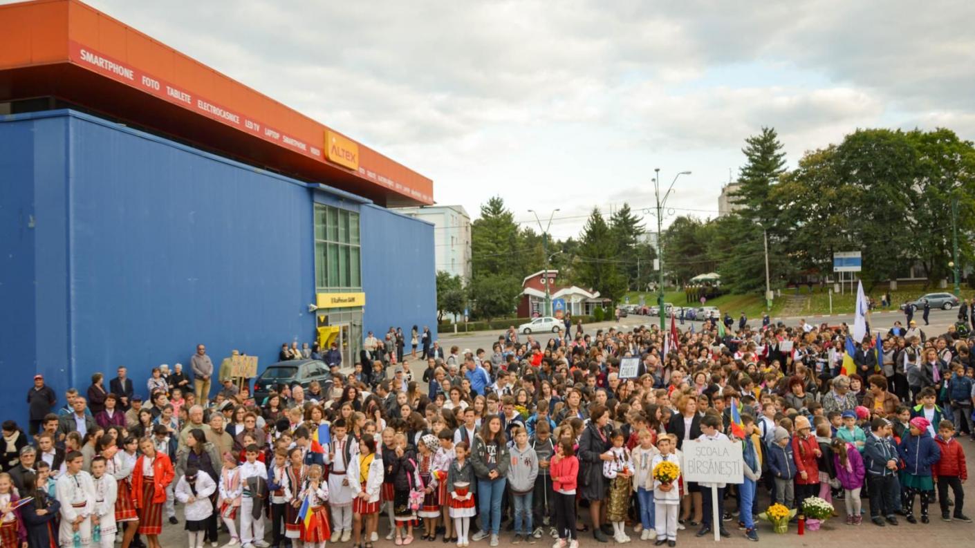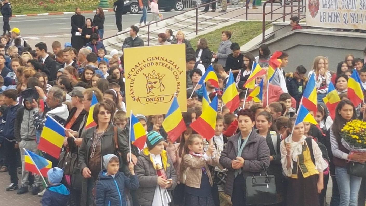 Unul dintre cele mai mari proiectele educațional-filantropice derulate în Patriarhia Română, ”Lăsați copiii să vină la Mine și nu-i opriți!”, în cadrul căruia câteva mii de copii primesc rechizite pentru începutul anului școlar, s-a încheiat în această după-amiază la Onești. Desfășurat pentru al cincilea an consecutiv în Eparhia Romanului și Bacăului, la inițiativa Înaltpreasfințitului Părinte Ioachim, proiectul s-a bucurat de prezența ierarhului, care s-a rugat alături de numeroșii elevi de la școlile și colegiile oneștene, dar și din instituțiile de învățământ aflate în cuprinsul Protopipiatului Onești, participanți la acest eveniment. Rugăciunile specifice acestui moment s-au împletit cu entuziasmul manifestat în mod deschis de copii care, la final, s-au lansat într-un dialog al bucuriei cu ierarhul. ”Vă mulțumesc pentru că ați venit cu toții, aici, să luați binecuvântare la acest început de an școlar. Dumnezeu să vă ocrotească, să vă lumineze mintea și sufletul cu dragostea Sa”, le-a urat Înaltpreasfinția Sa, adresând un mesaj de apreciere și profesorilor prezenți la eveniment. Desfășurată în Piațeta ”Regina Maria”, lângă monumentul eroilor, frumuseții sărbătorii s-a adăugat emoția sfântă din slujba de pomenire a celor s-au jertfit pentru libertatea, demnitatea și integritatea poporului român, prilej cu care, alături de chiriarh, copiii au depus florile recunoștinței pe lespedea de marmură ridicată în cinstea înaintașilor.