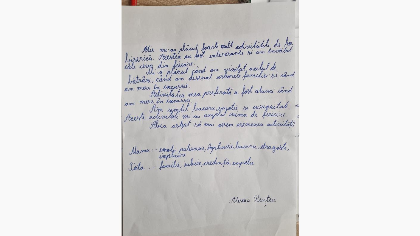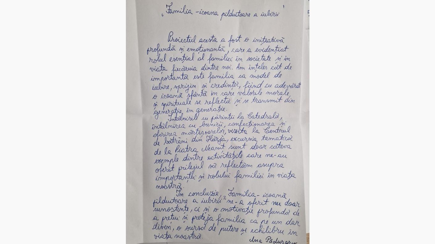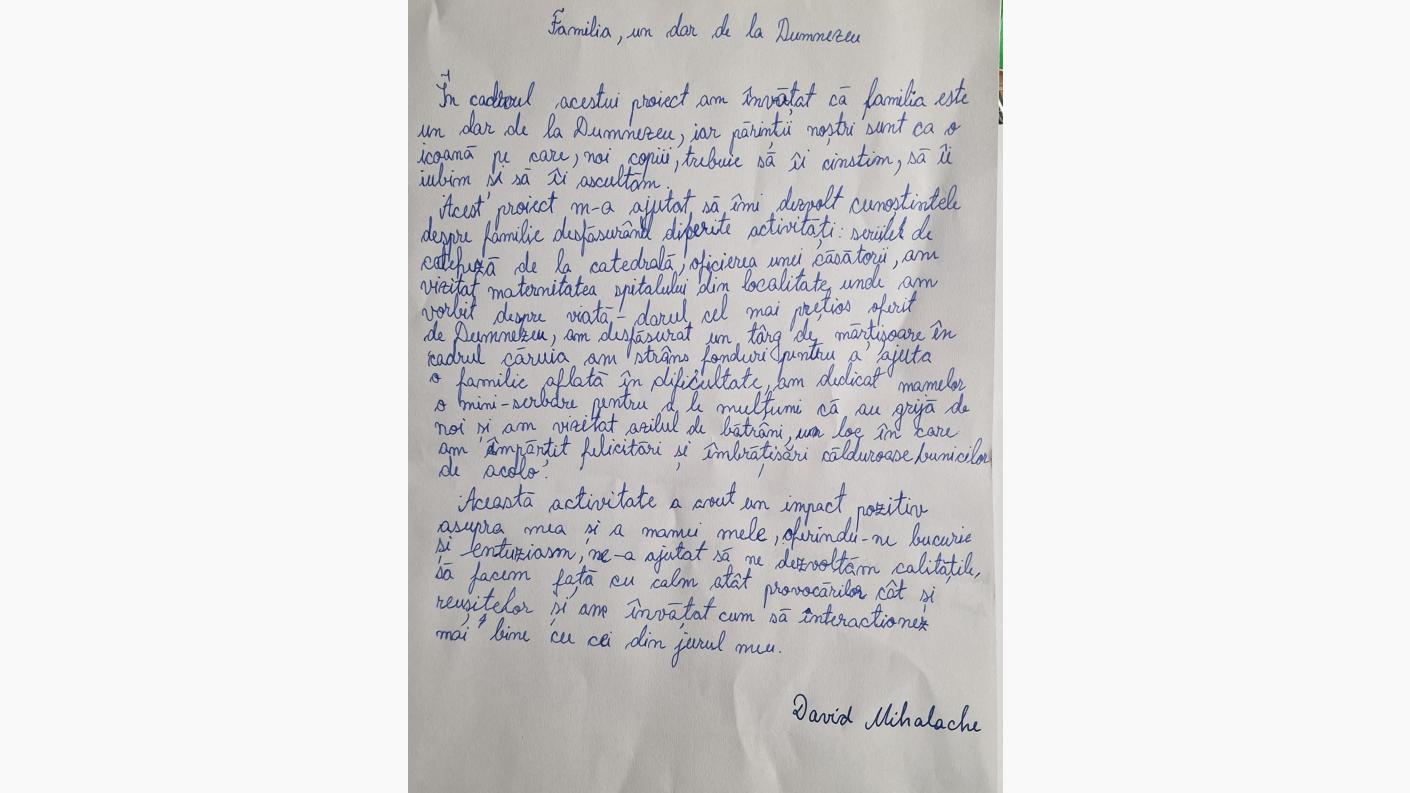 La final, copiii și părinții au consemnat câteva impresii despre timpul petrecut împreună în cadrul acestui proiect și despre modul în care și-au îmbogățit sufletele, mulțumind lui Dumnezeu care le-a îndrumat pașii.