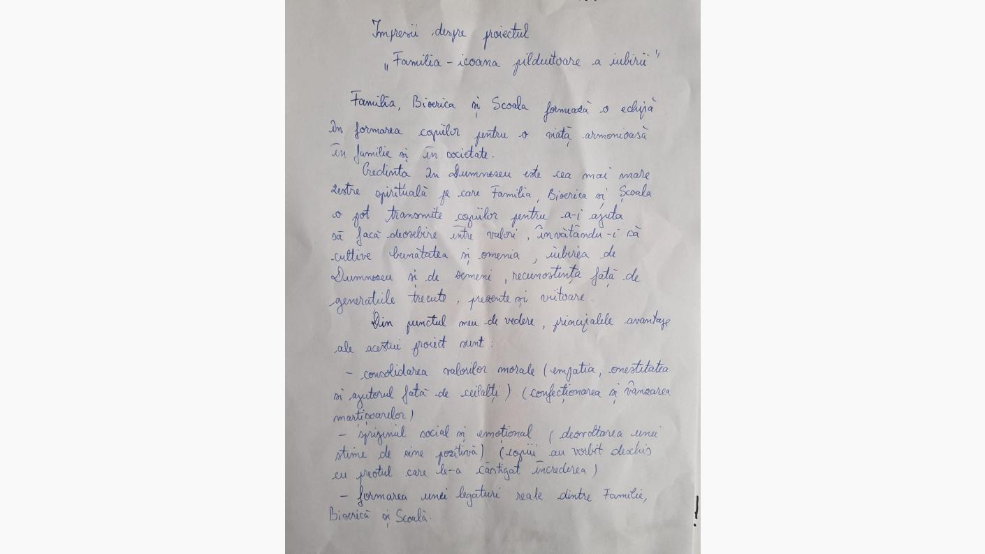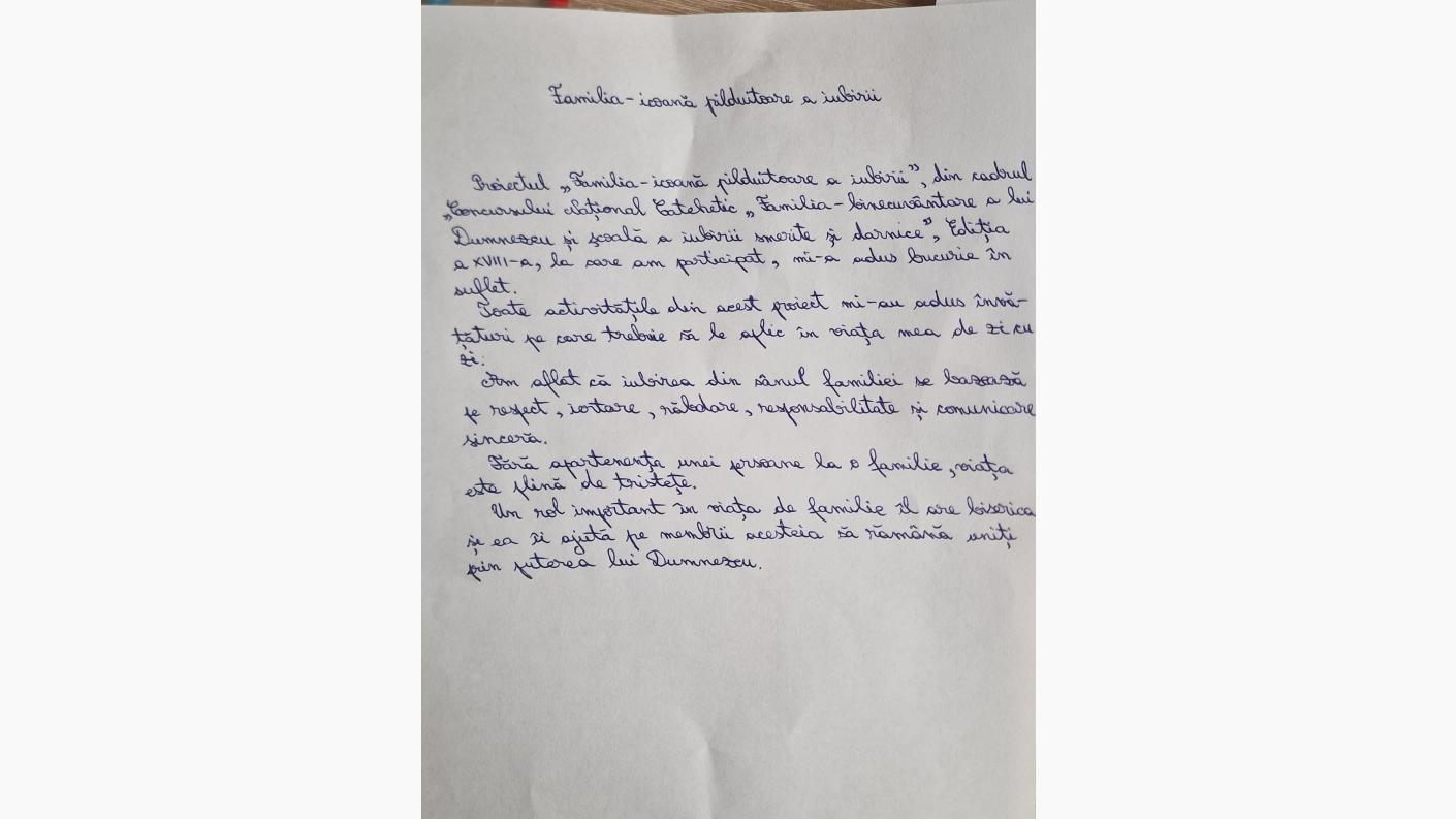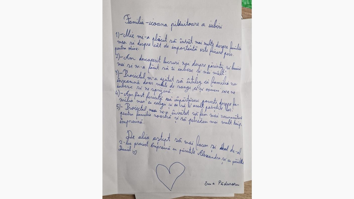 La final, copiii și părinții au consemnat câteva impresii despre timpul petrecut împreună în cadrul acestui proiect și despre modul în care și-au îmbogățit sufletele, mulțumind lui Dumnezeu care le-a îndrumat pașii.