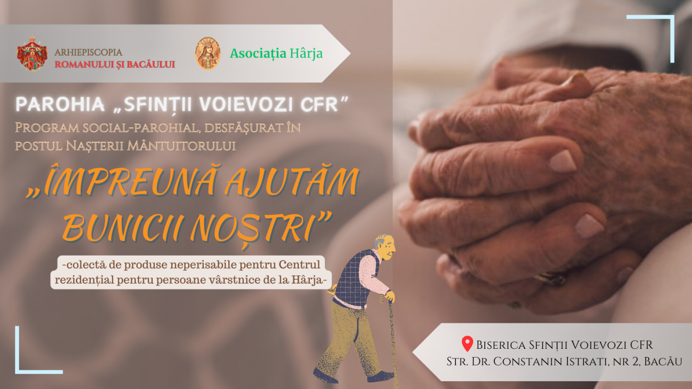 În contextul Anului Omagial al Pastorației Persoanelor Vârstnice, Parohia "Sfinții Voievozi" din cartierul CFR, Bacău, a organizat cu succes proiectul social-parohial "Împreună ajutăm bunicii noștri". Cu binecuvântarea Înaltpreasfințitului Părinte Ioachim, Arhiepiscopul Romanului și Bacăului, și sub îndrumarea părintelui protopop Ciprian Eugen Ciuche, comunitatea a făcut posibilă aducerea bucuriei și speranței în viețile celor vârstnici și a copiilor din Hârja.