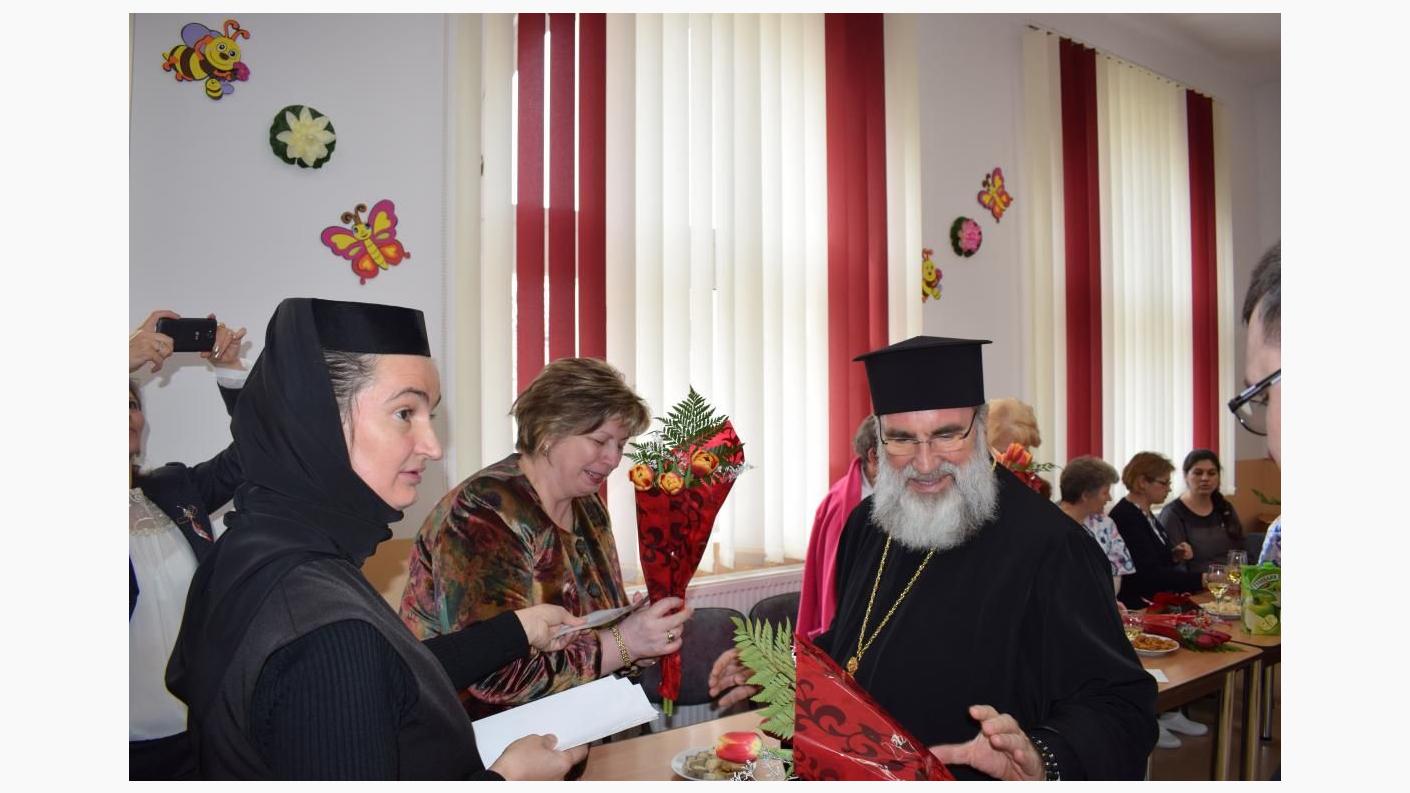 Vineri, 8 martie 2019, cu prilejul Zilei Internaţionale a Femeii şi a Mamei, Înaltpreasfinţitul Părinte Ioachim, Arhiepiscopul Romanului şi Bacăului, a binecuvântat şi a felicitat maicile şi doamnele angajate în cadrul Fundaţiei „Episcop Melchisedec” Roman.