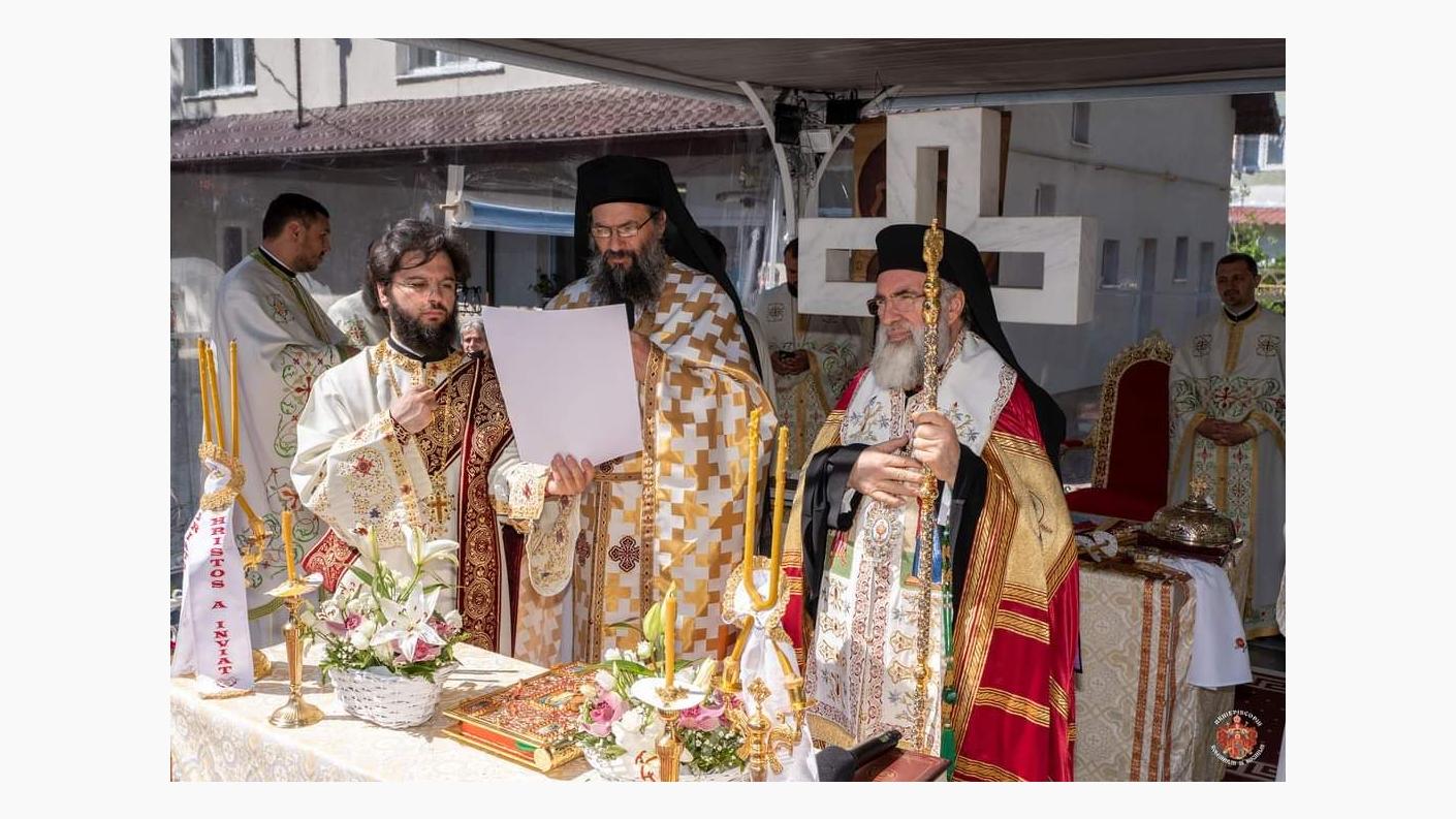 În ziua evenimentului, pe o scenă special amenajată în curtea lăcașului de cult, un sobor de preoți a săvârșit Sfânta Liturghie, sub protia părintelui arhimandrit Pimen Costea, vicar eparhial. În cuvântul rostit la Evanghelia zilei, pr. Pimen Costea a spus: „Toma credea în Înviere, credea în faptul ca Hristos este viu, dar nu era convins de forma în care i-au fost relatate acestea. El nu a crezut orbește ceea ce i s-a spus. Mântuitorul Însuși întăreşte această atitudine spunând: cercetați Scripturile! Căutând să ne apropiem de adevăr, ne asemănăm lui Toma. Important e să ajungem să exclamăm, ca şi el, „Domnul meu si Dumnezeul meu!”.