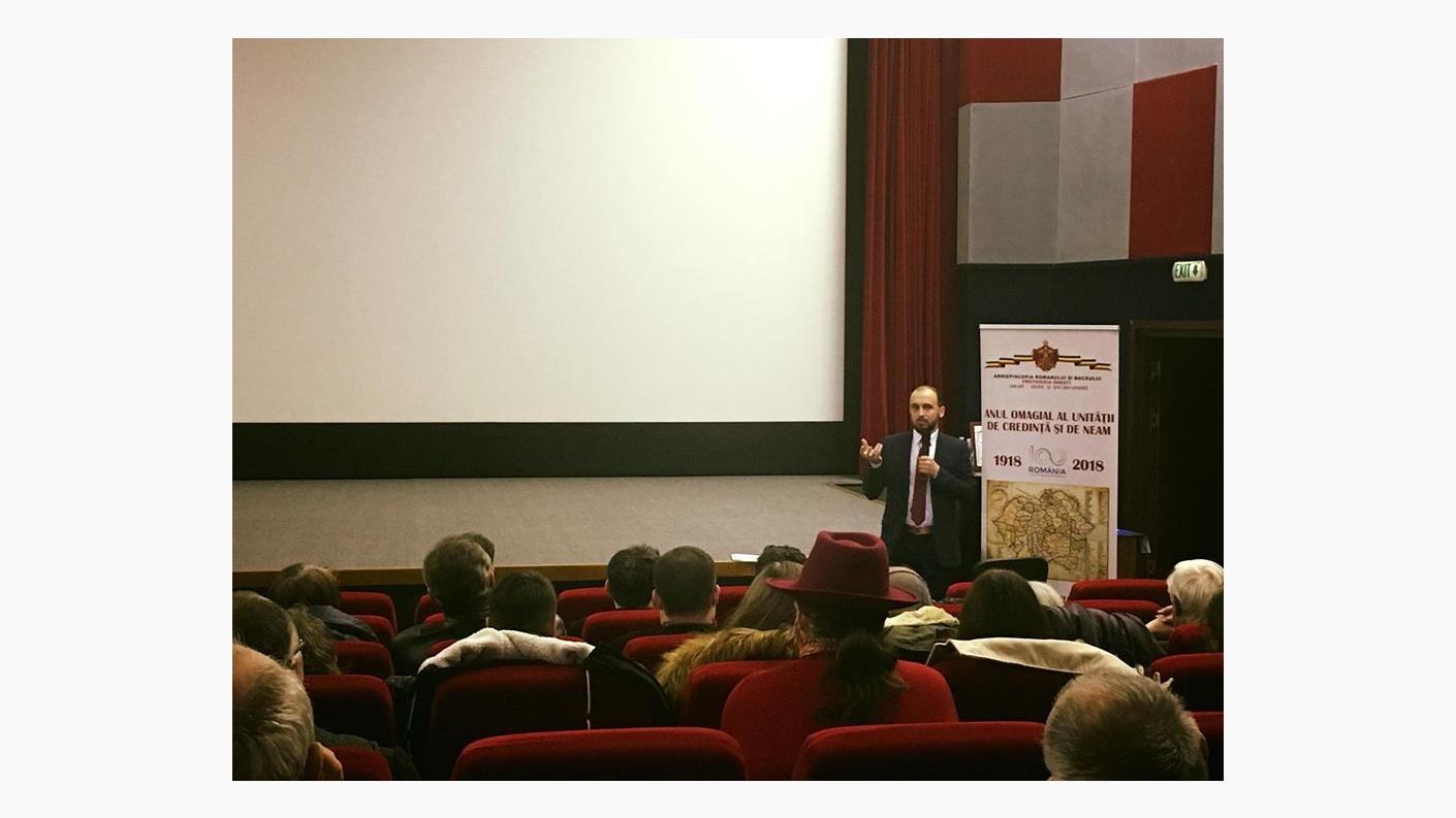 În prima parte, invitatul a oferit celor prezenți o veritabilă lecție de istorie prezentând pe scurt evenimentele ce au precedat reîntregirea țării.