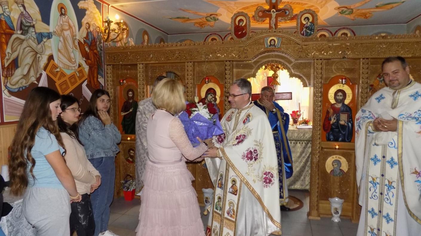 La invitaţia părintelui Justinian Cimpoeru, profesor de Religie în cadrul acestei unități de învățământ, împreună cu părintele inspector Adrian Alexandrescu au mai slujit Sfânta și Dumnezeiasca Liturghie, părintele Sandu Octav, pensionar, cu o vechime de peste 40 de ani de preoţie şi părintele Mihai-Flavius Balaban, slujitor al Parohiei „Sf. Trei Ierarhi” Bacău.