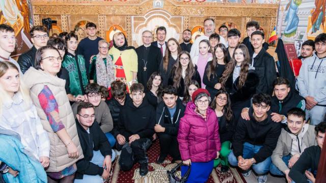 Răspunsurile la strană au fost date de foşti şi actuali elevi ai Colegiului „Mihai Eminescu” Bacău.