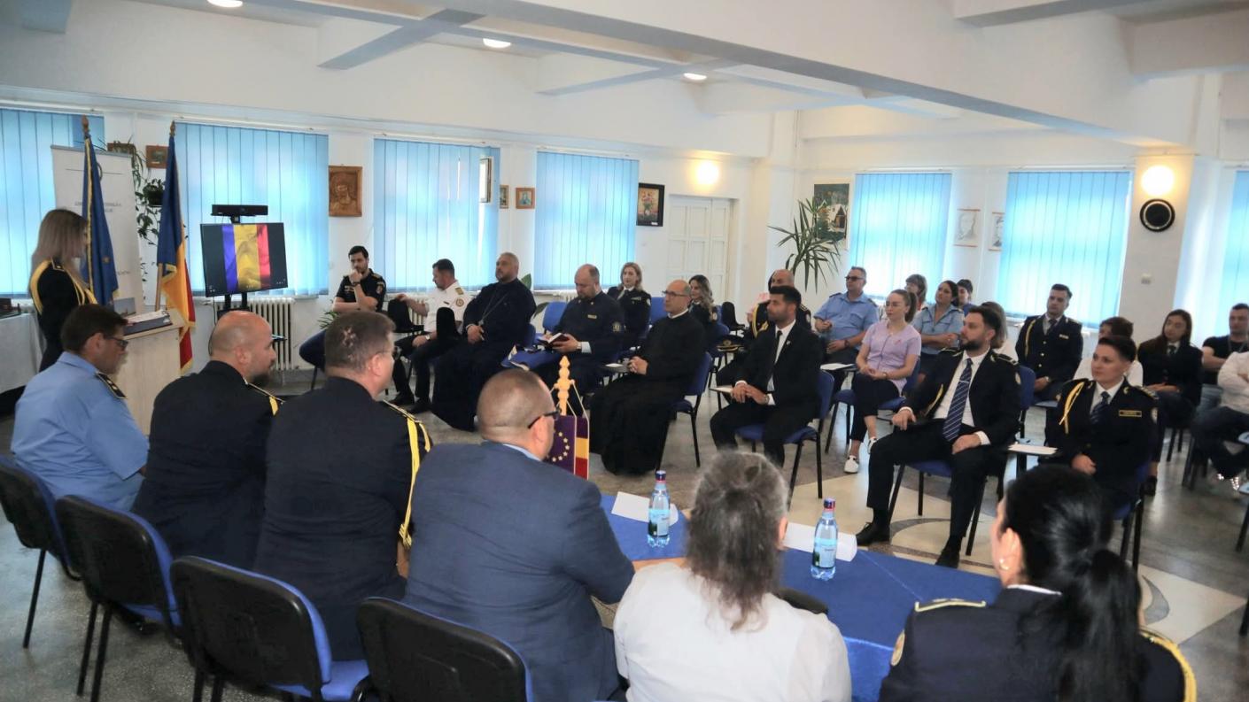 Manifestările au continuat în sala de festivități, unde a avut loc o ședință festivă de ridicare în grad a unor cadre ale unității, ca semn de apreciere pentru profesionalismul și devotamentul acestora. Totodată, au fost înmânate diplome de apreciere colaboratorilor implicați activ în viața și misiunea instituției. Între cei distinși cu astfel de diplome s-au numărat părintele protopop Zaharia Nicolae și părintele capelan Cuibar Petrică, în semn de recunoștință pentru sprijinul constant și angajamentul spiritual față de comunitatea penitenciară.