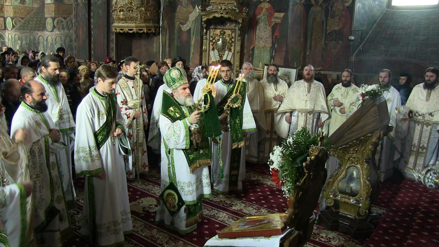 La slujba Utreniei și apoi a Sfintei Liturghii au participat în această zi de prăznuire a hramului reprezentanții cei mai de seamă ai mănăstirilor din cuprinsul administrativ-canonic al Eparhiei, împlinind astfel o tradiție statornicită de Chiriarhul de la Roman, el însuși fiind prezent astăzi, în însăși ziua prăznuirii, pentru prima dată de când a fost învestit în treapta de arhiepiscop. Astfel, părinți stareți și maici starețe, la care s-au adăugat și părinți duhovnici de la cele 36 de schituri și mănăstiri din Eparhie au înălțat rugăciuni către Sfânta care prin viața sa smerită a întruchipat împinirea voturilor monahale așazând la temelia vieții ei spirituale asumate cuvintele cutremurătoare ale Fiului lui Dumnezeu „Cel ce vrea să vină după Mine, să se lepede de sine să-și ia crucea și să-Mi urmeze Mie!” (Mc. 8,36).