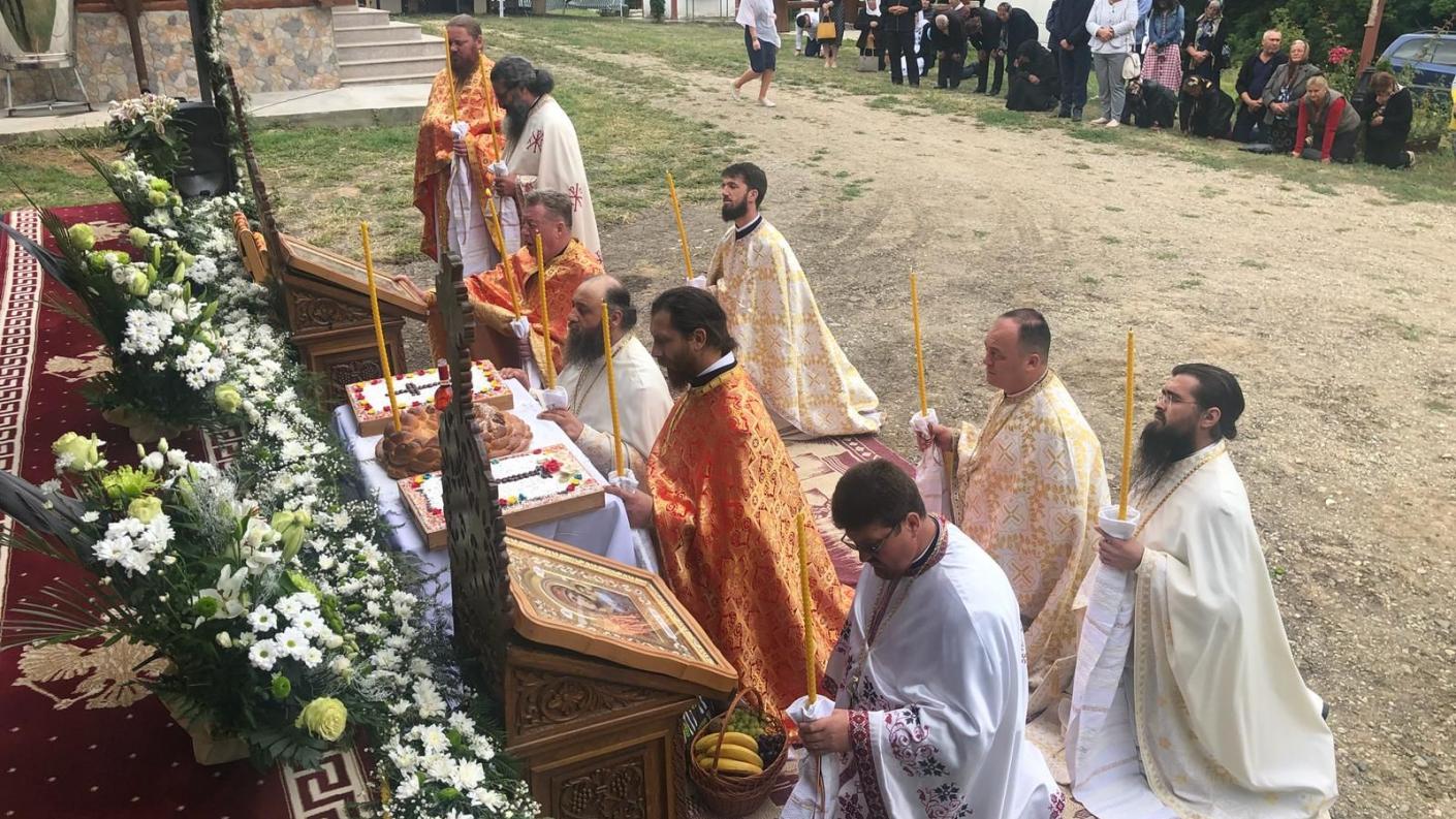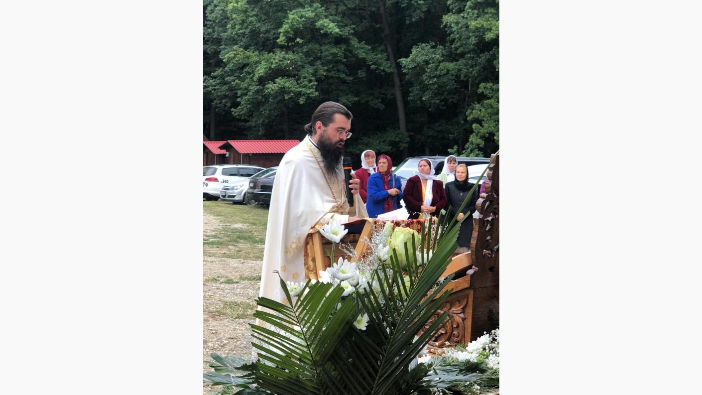 Slujba Sfintei Liturghii a fost oficiată în altarul de vară, din Poiana lui Dumnezeu, de un sobor de preoți, sub protia P.Cuv. Arhimandrit Serafim Huzdup, consilier eparhial și exarhul Mănăstirilor din Arhiepiscopia Romanului și Bacăului, delegat al Înaltpreasfințitului Părinte Arhiepiscop Ioachim, care în cuvântul său a transmis credincioșilor și pelerinilor arhierești binecuvântări din partea Ierarhului.