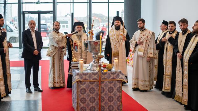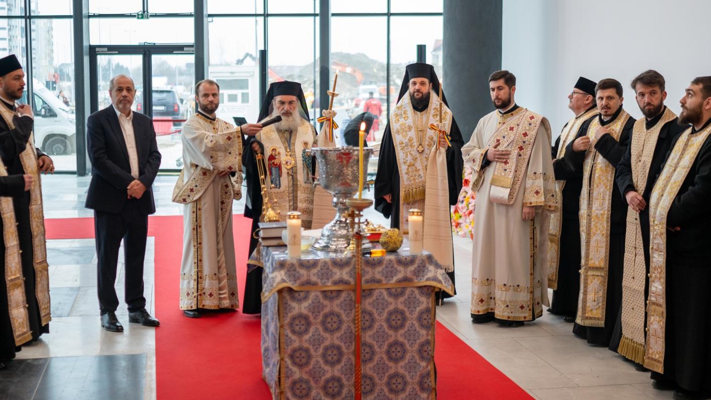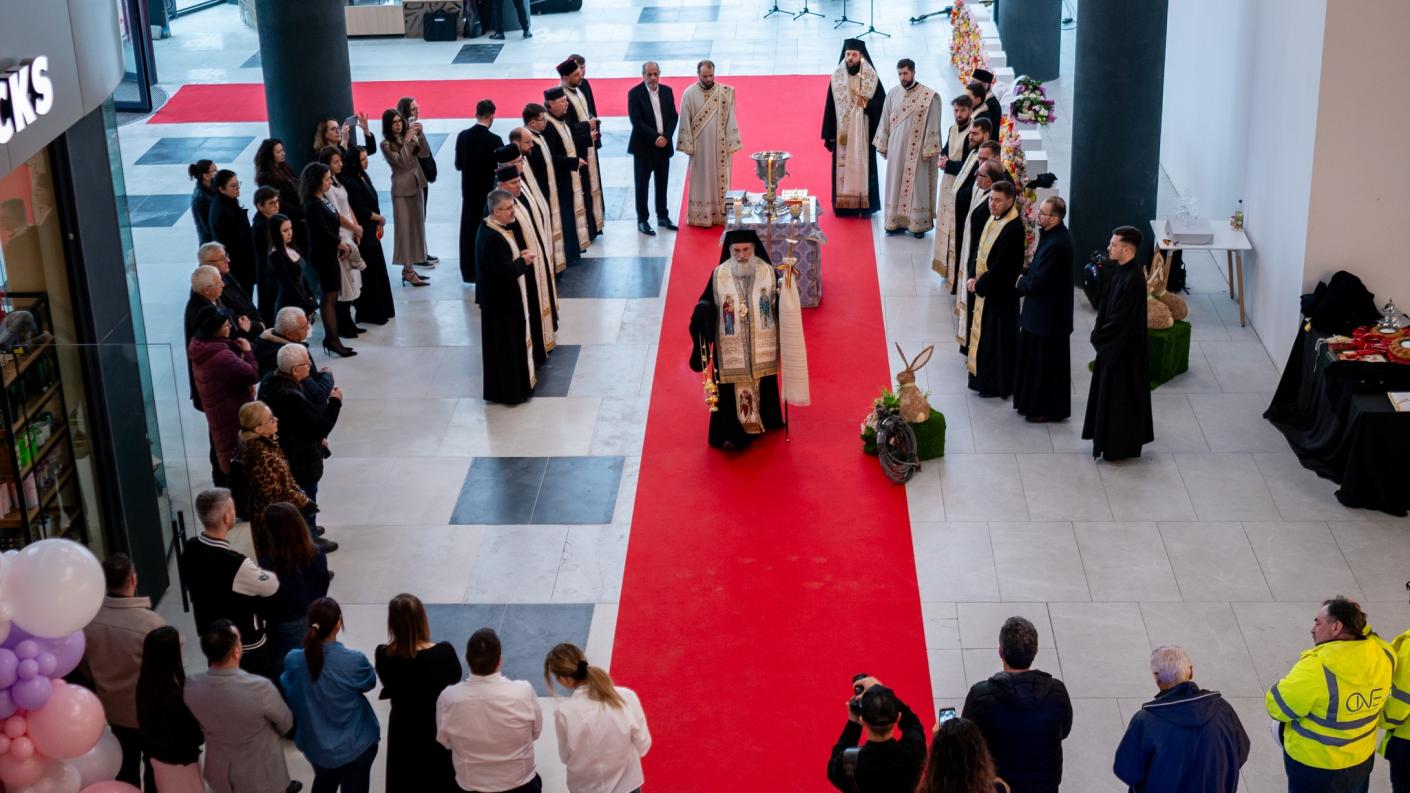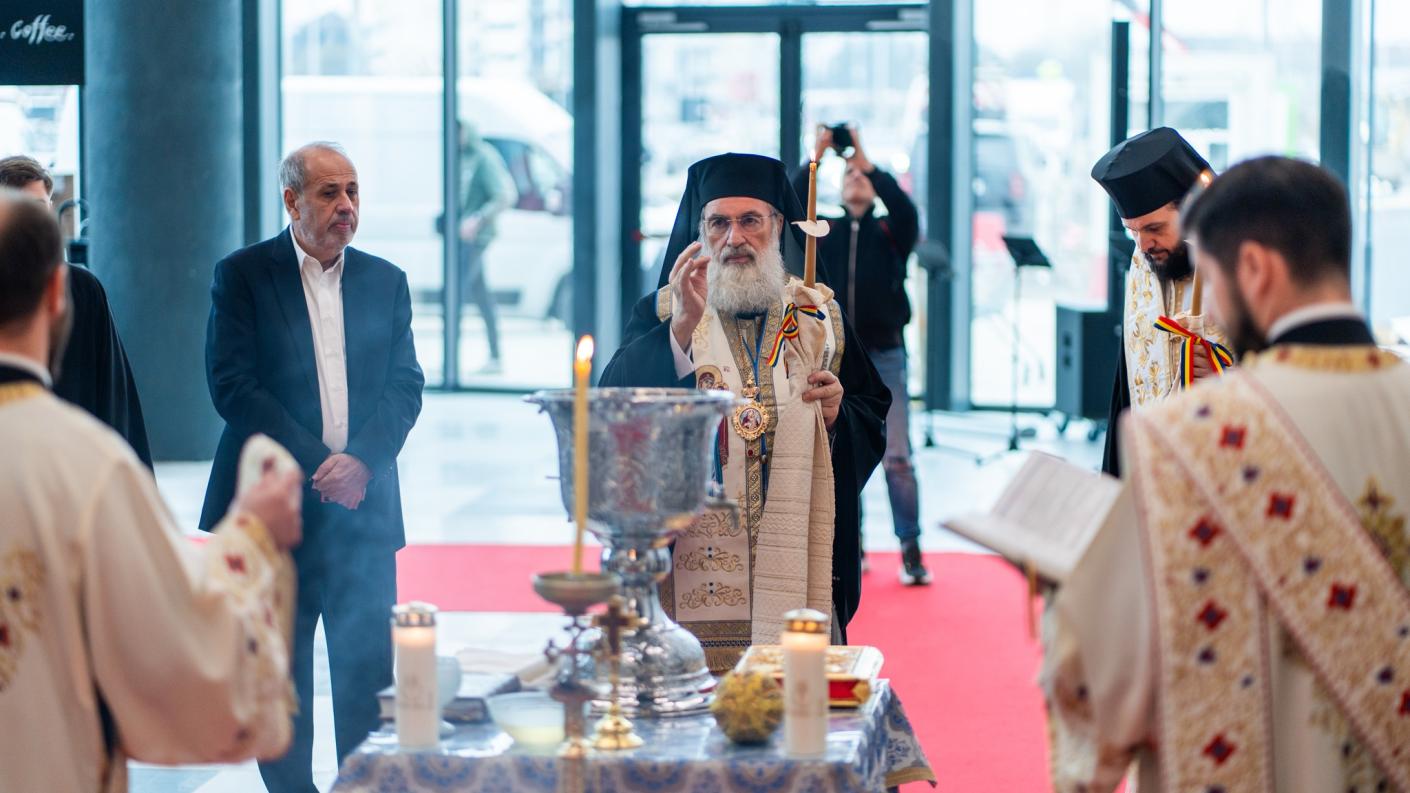 Cei doi ierarhi, însoțiți de un sobor de preoți și diaconi, au oficiat slujba de binecuvântare a lucrărilor realizate în cadrul proiectului de extindere și modernizare a centrului comercial, precum şi a noului magazin cu obiecte bisericeşti din cadrul acestuia, într-un spațiu pus la dispoziție prin bunăvoința și generozitatea domnului Ovidiu Budeanu.