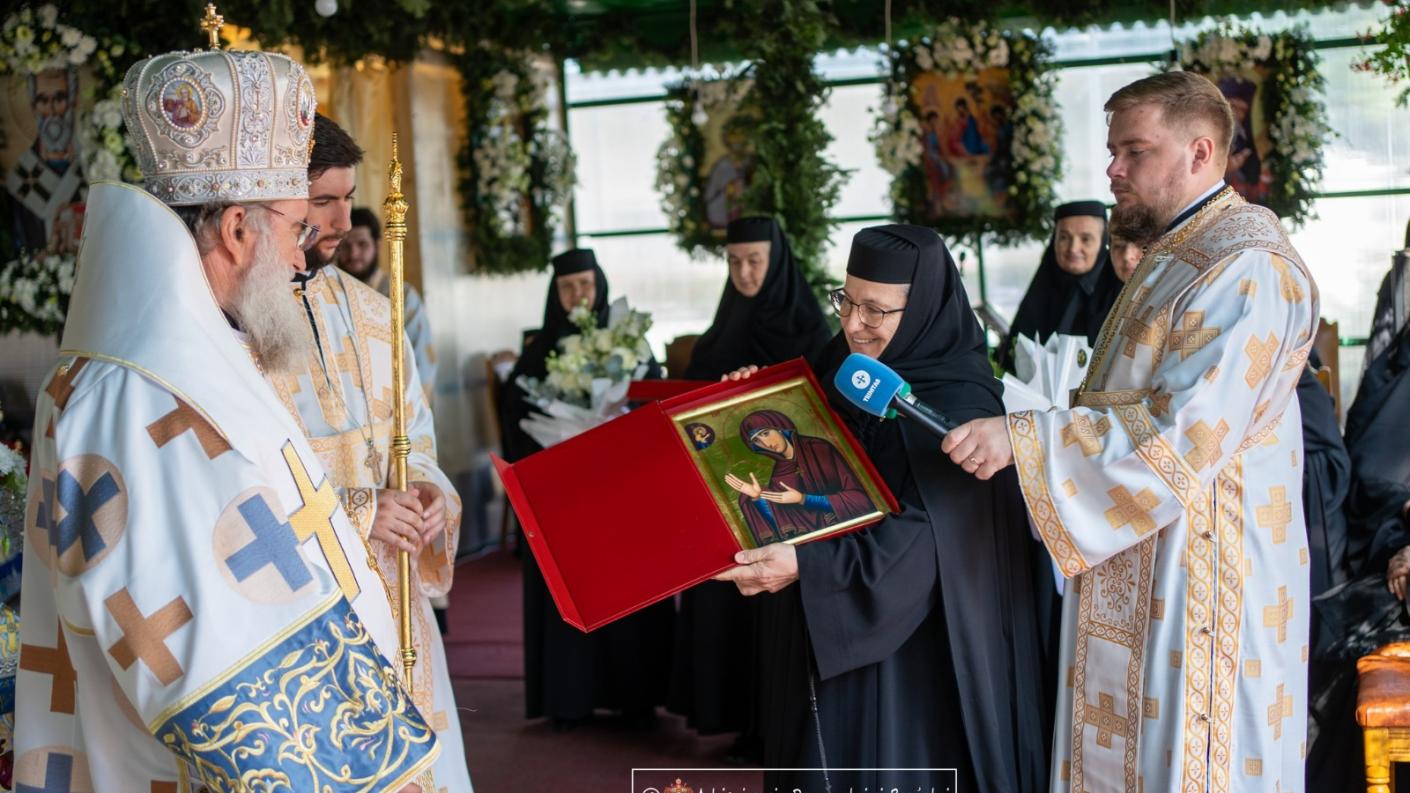 La finalul evenimentului, maica stareță, stavrofora Iosefina Giosanu, a mulțumit celor doi ierarhi pentru litughisire și pentru cuvântul de învățătură și a oferit Înaltpreasfințitului Părinte Ioachim o sfântă icoană cu Maica Domnului, iar Preasfințitului Părinte Teofil Trotușanul o icoană cu Sfântul Iosif de la Văratec și Sfântul Gheorghe Pelerinul, ocrotitorii acestei vetre monahale nemțene.