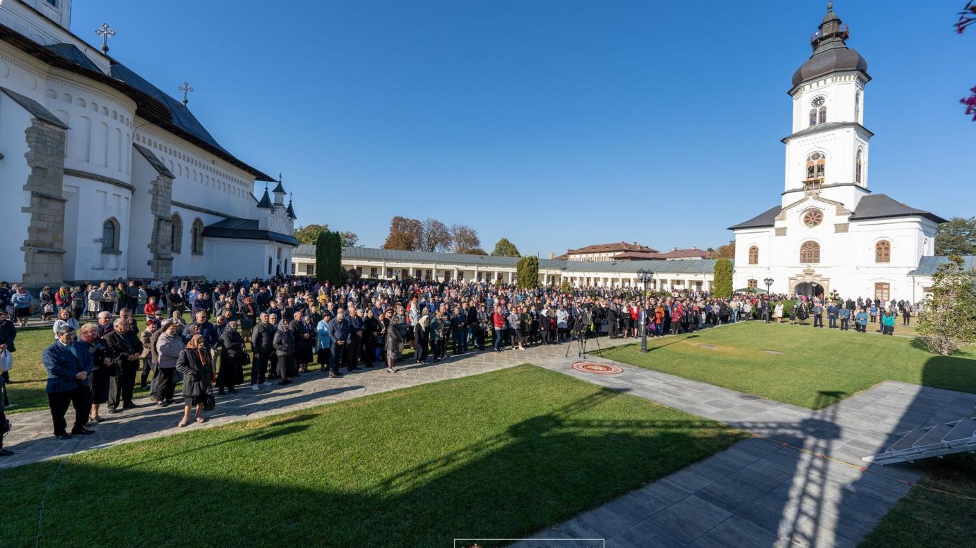 La slujba Ceasurilor, a Acatistului Sfintei Cuvioase Parascheva și apoi a Sfintei Liturghii au participat în această zi de prăznuire a hramului reprezentanții cei mai de seamă ai mănăstirilor din cuprinsul administrativ-canonic al Eparhiei, împlinind astfel o tradiție statornicită de Chiriarhul de la Roman. Astfel, părinți stareți și maici starețe, având în mijlocul lor pe Înaltpreasfințitul Părinte Ioachim, au înălțat rugăciuni către Sfânta care prin viețuirea sa smerită a întruchipat împlinirea voturilor monahale așezând la temelia vieții ei cuvioase cuvintele evanghelice „Cel ce vrea să vină după Mine, să se lepede de sine să-și ia crucea și să-Mi urmeze Mie!”.