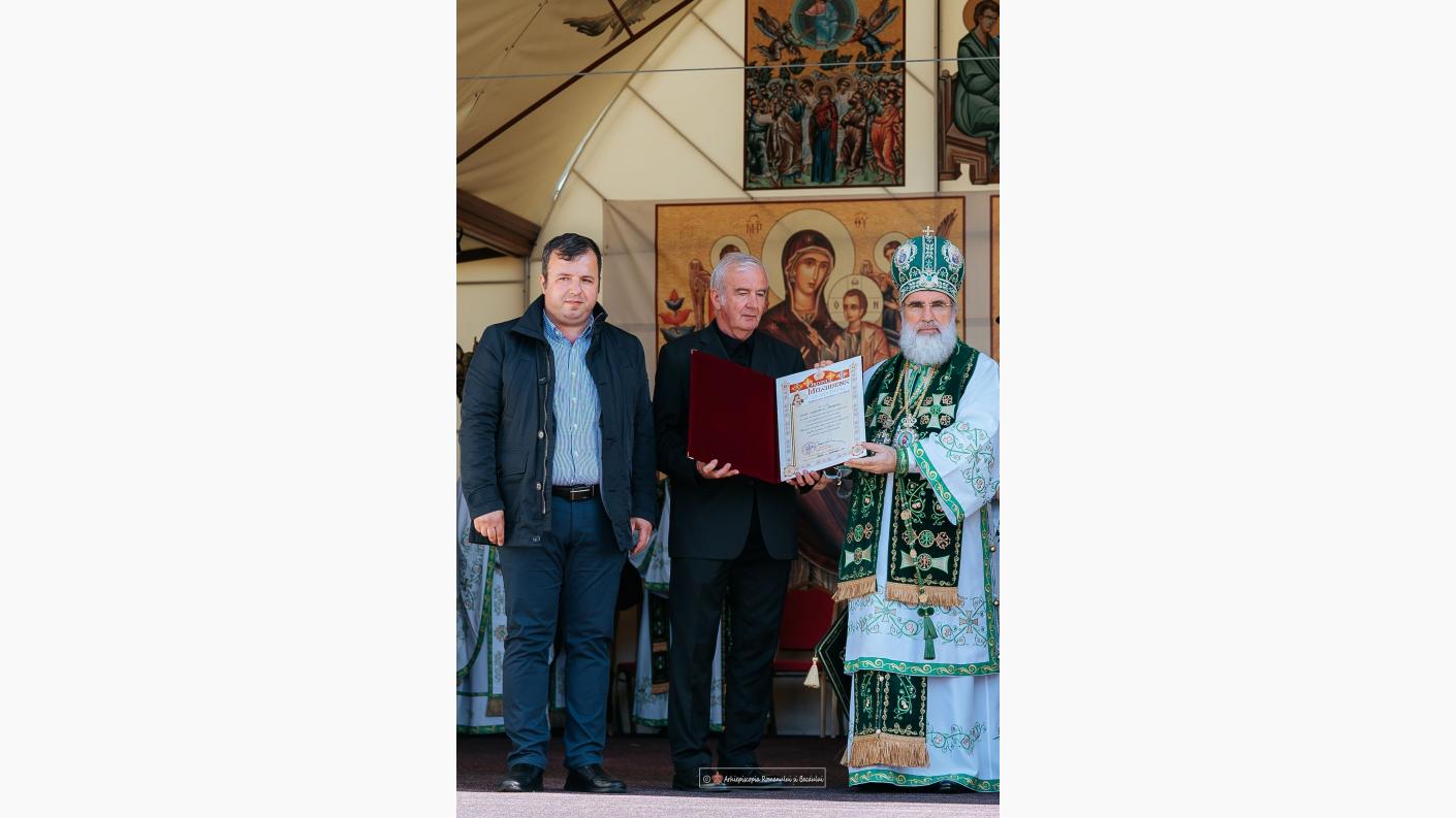 Referindu-se la efortul depus de echipa de ingineri implicată în transportarea și montarea echipamentelor necesare funcționării noilor clopote astfel încât la hramul Catedralei arhiepiscopale să poată fi auzită în premieră armonia acestora, Înaltpreasfințitul Părinte Ioachim a remarcat faptul că această lucrare a fost posibilă cu ajutorul Ocrotitoarei Eparhiei Romanului și Bacăului și contribuția financiară a ctitorilor, cărora le-a fost conferită distincția Crucea Patriarhală: