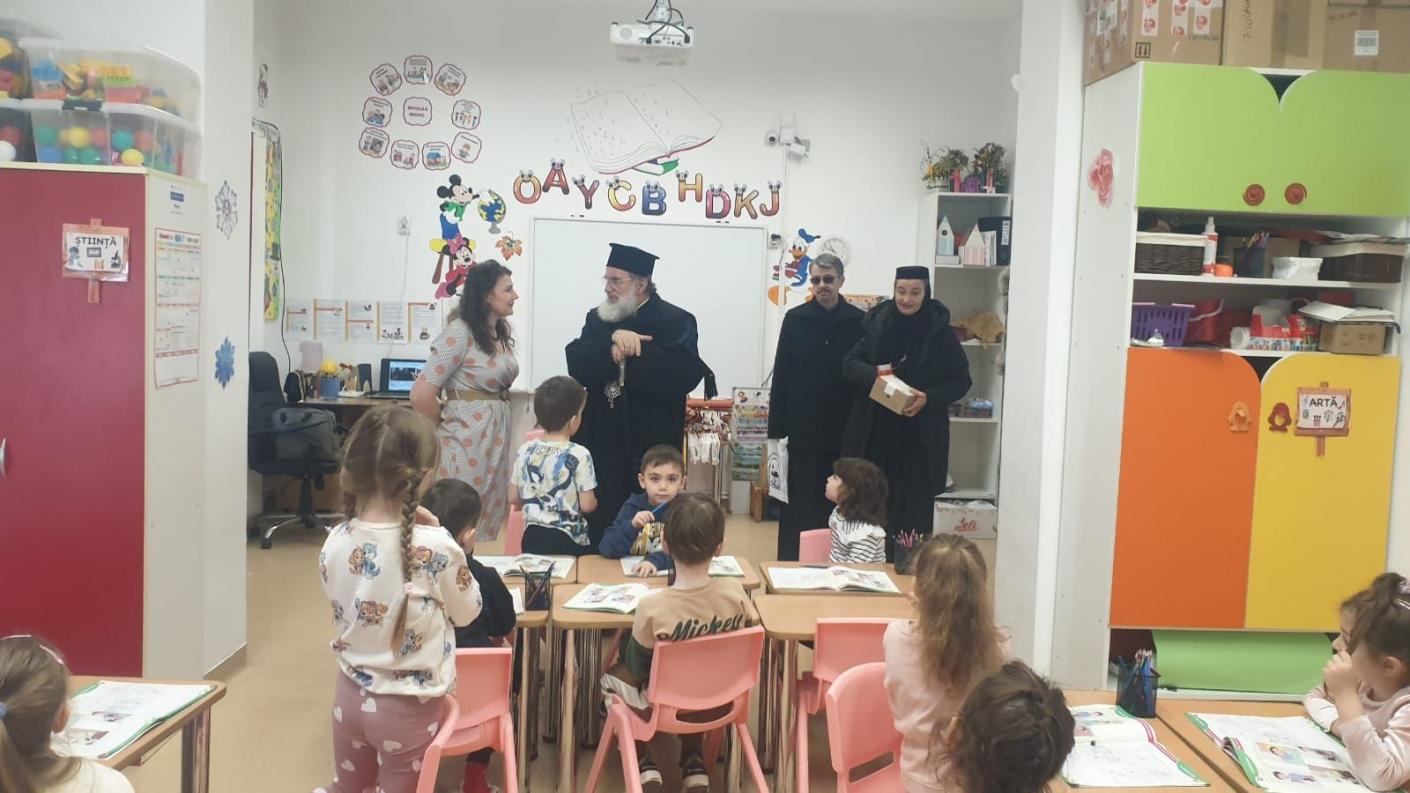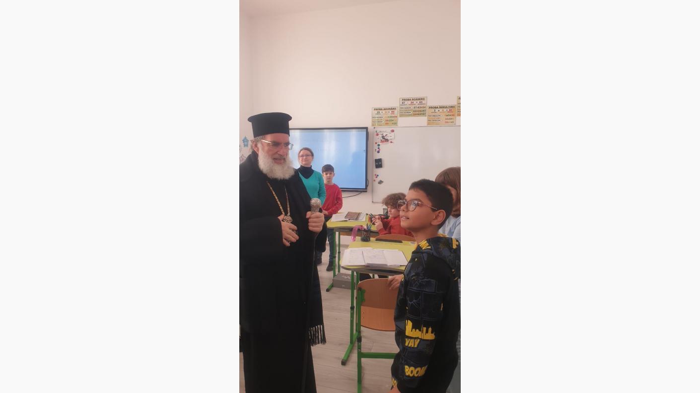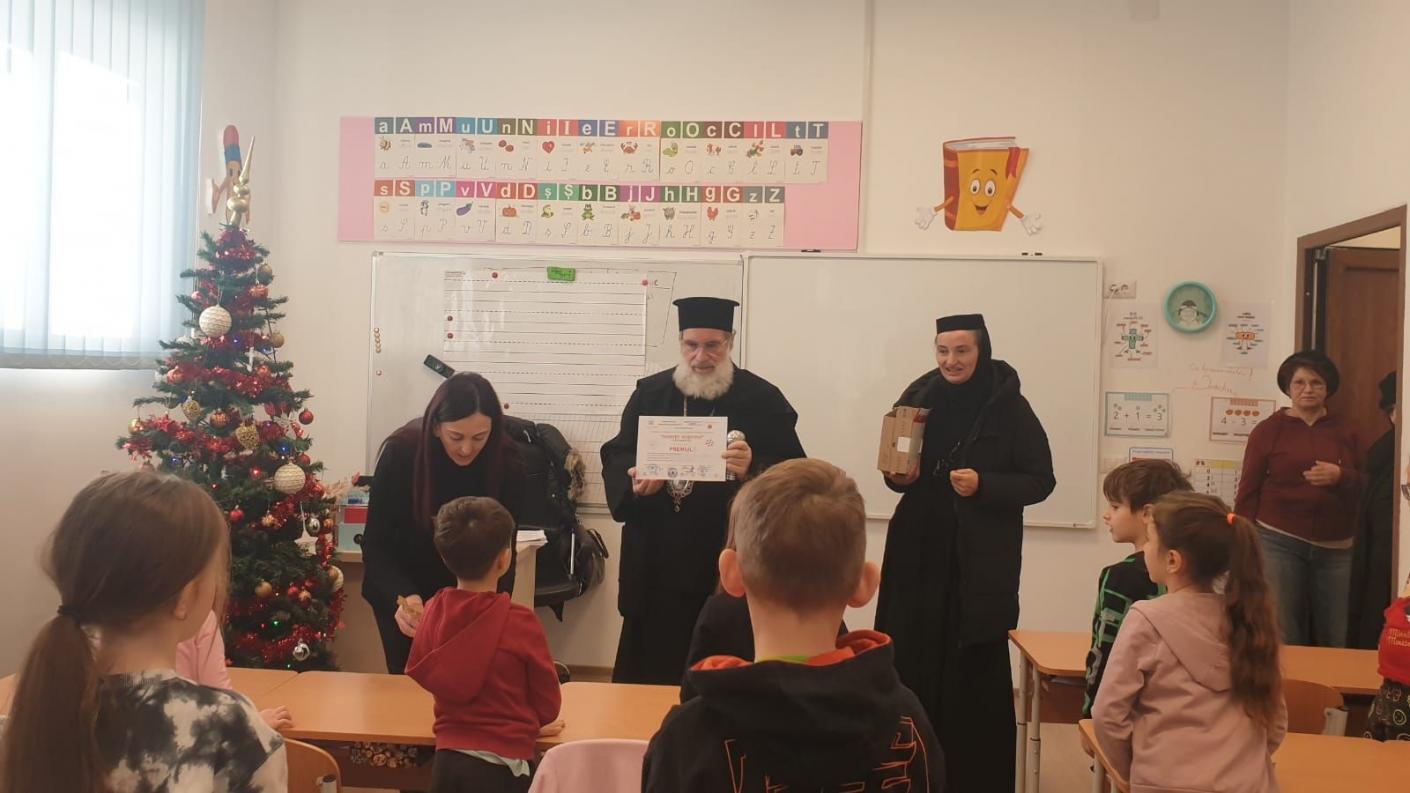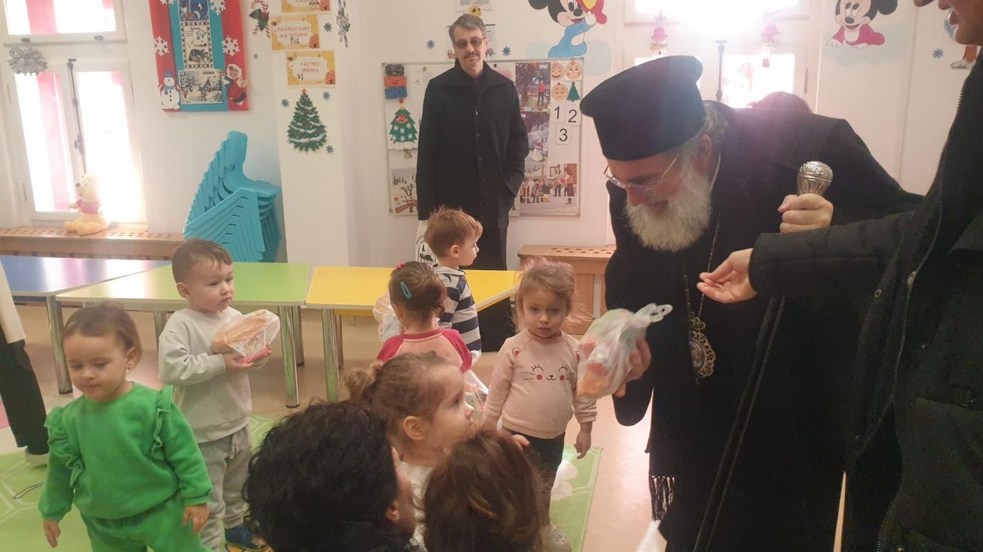 Într-o atmosferă de muncă asiduă a echipei de cadre didactice, dar și de bucurie, în preajma Praznicului Nașterii Domnului, ierarhul a ajuns în fiecare clasă de elevi, la cele patru de preșcolari și la cele patru de școlari, pentru a se întâlni personal cu fiecare copil, oferindu-le daruri și aprecierea Înaltpreasfinției Sale pentru rezultatele deosebite obținute la concursurile județene și naționale. În dar, fiecare clasă de elevi, atât cei din școala primară, cât și cei de la grădiniță, au interpretat colinde tradiționale și au povestit cu Înaltpreasfinția Sa aspecte legate de copilăria și nevoile lor.