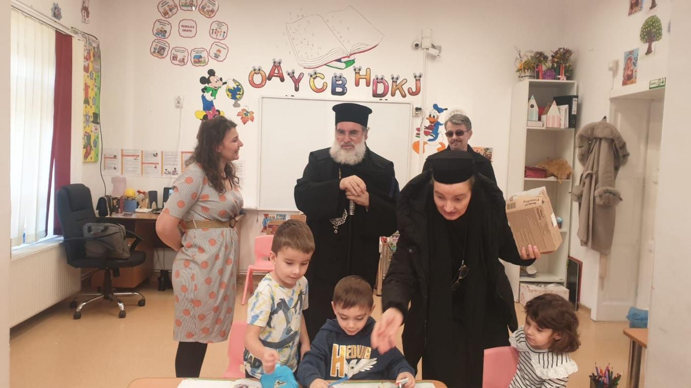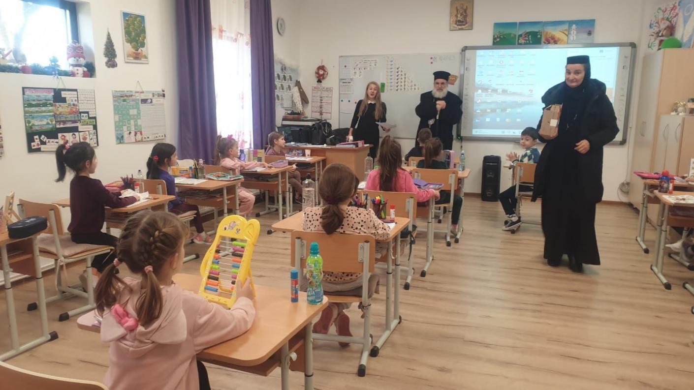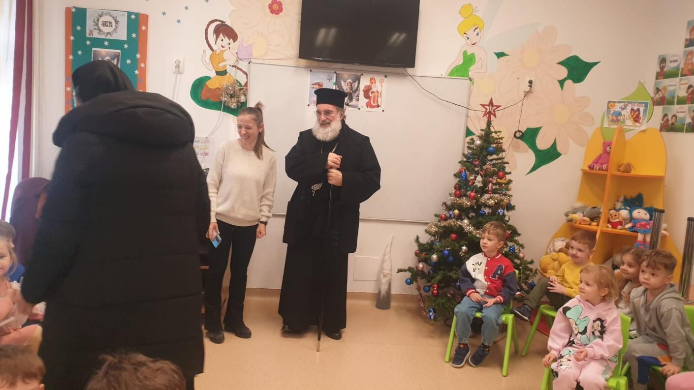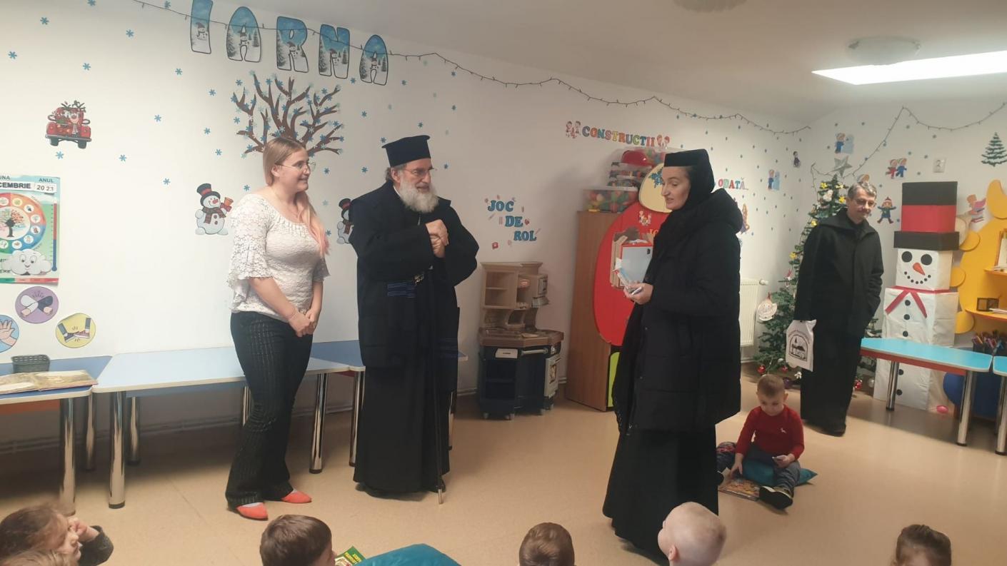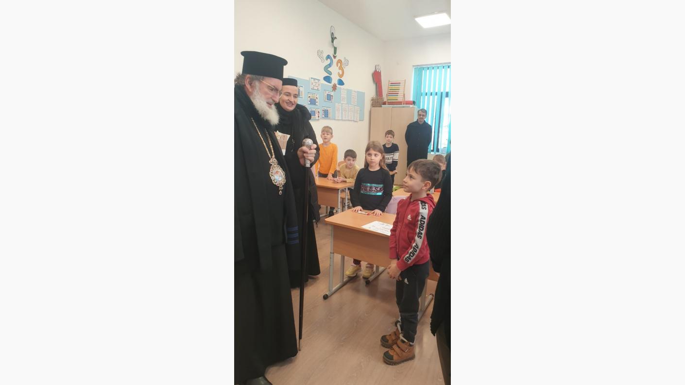 Într-o atmosferă de muncă asiduă a echipei de cadre didactice, dar și de bucurie, în preajma Praznicului Nașterii Domnului, ierarhul a ajuns în fiecare clasă de elevi, la cele patru de preșcolari și la cele patru de școlari, pentru a se întâlni personal cu fiecare copil, oferindu-le daruri și aprecierea Înaltpreasfinției Sale pentru rezultatele deosebite obținute la concursurile județene și naționale. În dar, fiecare clasă de elevi, atât cei din școala primară, cât și cei de la grădiniță, au interpretat colinde tradiționale și au povestit cu Înaltpreasfinția Sa aspecte legate de copilăria și nevoile lor.