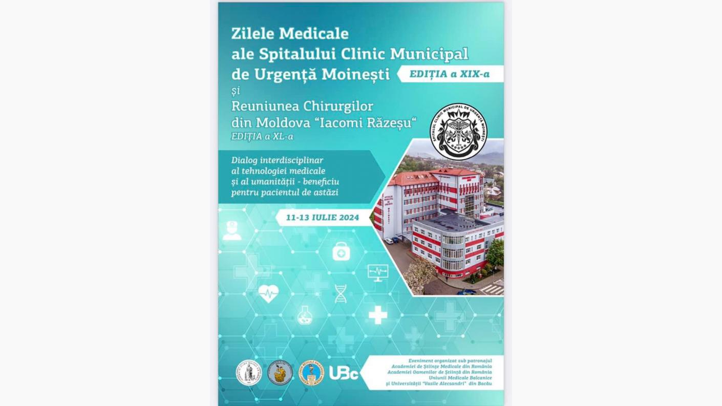 Sâmbătă, 13 iulie, sunt programate un curs și două sesiuni științifice, în încheierea ediției a XL-a a Zilelor Medicale ale Spitalului Clinic de Urgență Moinești.