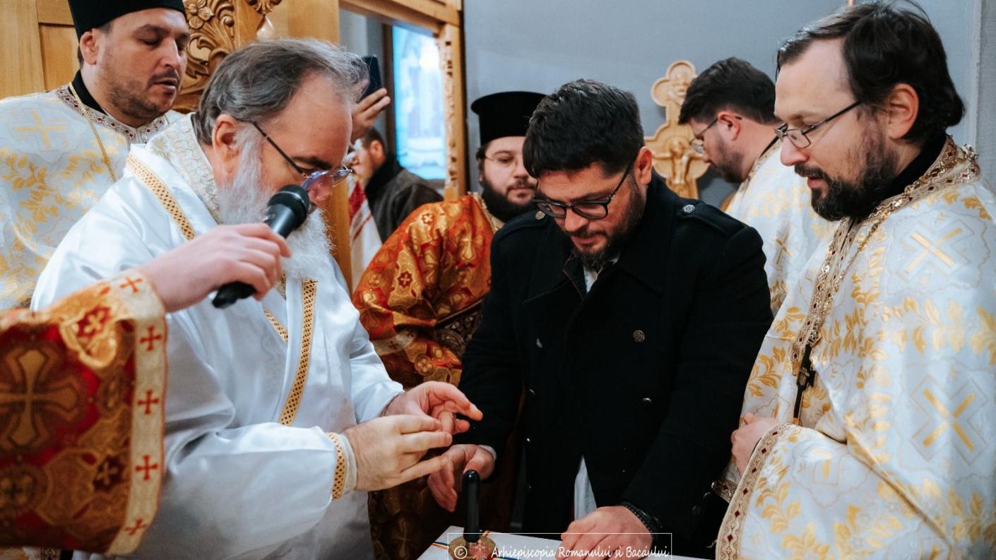 Ctitorul a mulțumit Ierarhului, oferindu-I o icoană pictată pe pânză de către cei 20 de copii ai asociației pe care o coordonează.