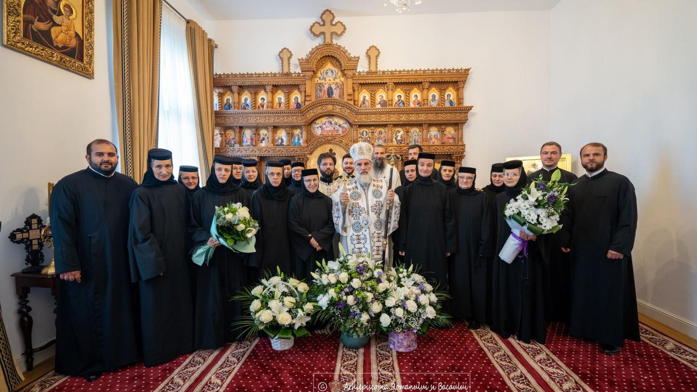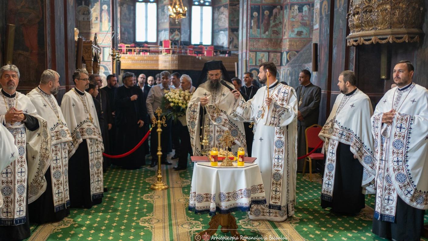 Sărbătoarea închinată Sfinților și Dumnezeieștilor Părinți Ioachim și Ana are o însemnătate aparte pentru fiii și fiicele duhovnicești ale Arhiepiscopiei Romanului și Bacăului deoarece în această zi sunt cinstiți ocrotitorii spirituali ai Întâistătătorului acestei eparhii. De la primele ore ale dimineții de sâmbătă, 9 septembrie, într-o atmosferă de rugăciune și reculegere, Înaltpreasfințitul Părinte Ioachim a săvârșit Sfânta Liturghie alături de părintele arhimandrit Pimen Costea, vicar administrativ, în Paraclisul din reședința arhiepiscopală din Roman. Apoi, începând cu ora 11.00, soborul preoților protopopi din cele cinci protopopiate ale eparhiei, sub protia părintelui vicar Pimen Costea, în prezența Înaltpreasfințitului Părinte Ioachim, a preoților consilieri și inspectori eparhiali, a invitaților și oficialităților locale și centrale a săvârșit în Catedrala arhiepiscopală „Sfânta Cuvioasă Parascheva” slujba de Te Deum pentru binefacerile revărsate de Dumnezeu asupra Înaltpreasfințitului Părinte Ioachim și a Eparhiei Romanului și Bacăului.