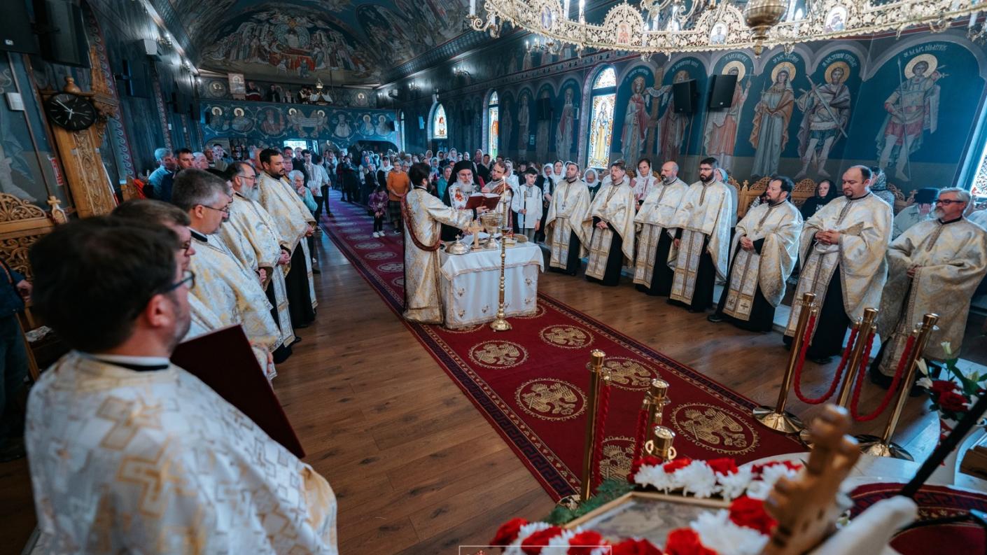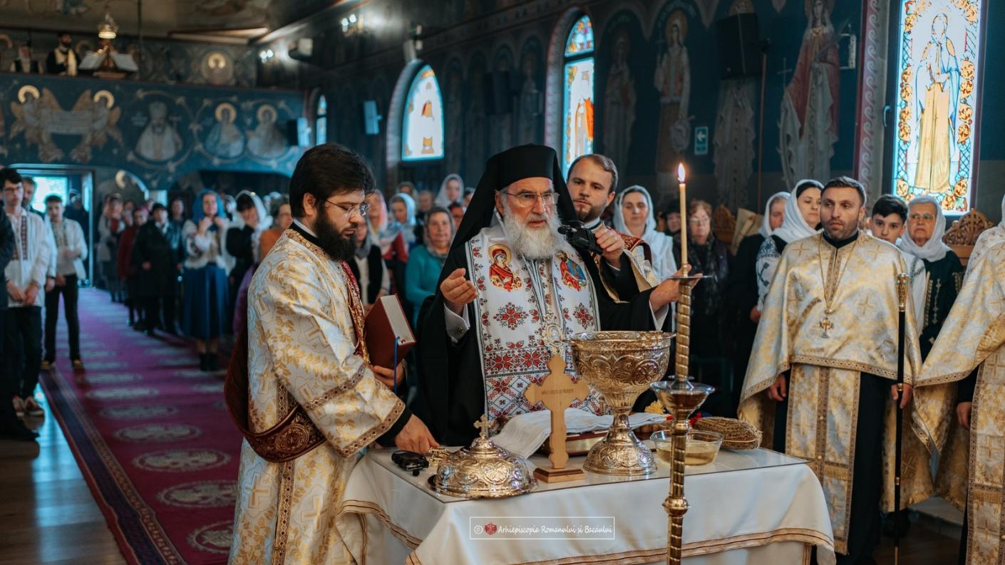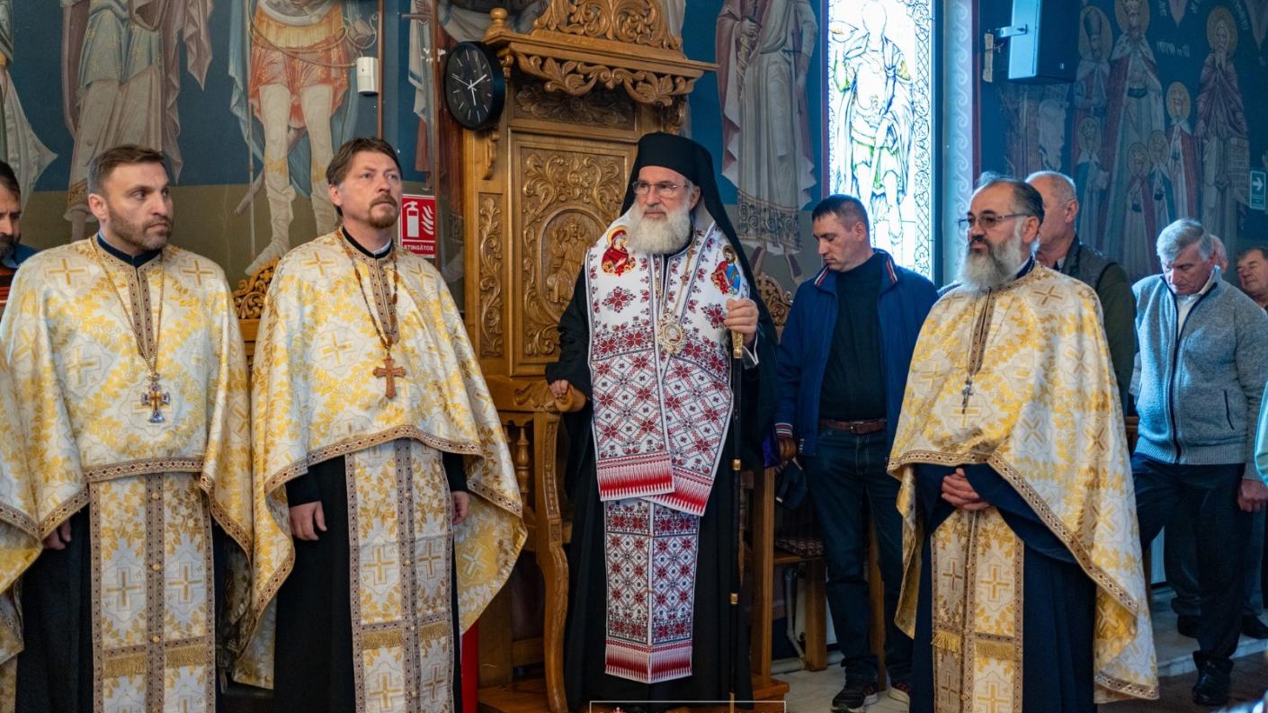 Începând cu ora 16.00, un sobor de preoți și diaconi, coordonat de preotul protopop Ciuche Eugen, a oficiat slujba Vecerniei sub protia Înaltpreasfințitului Părinte Ioachim, apoi a fost săvârșită slujba de sfințire a Așezământului cultural-catehetic pentru tineri și copii „Sfântul Mărturisitor Ioan Rusul” și a unui lumânărar așezat sub ocrotirea Sfintei Fotini.