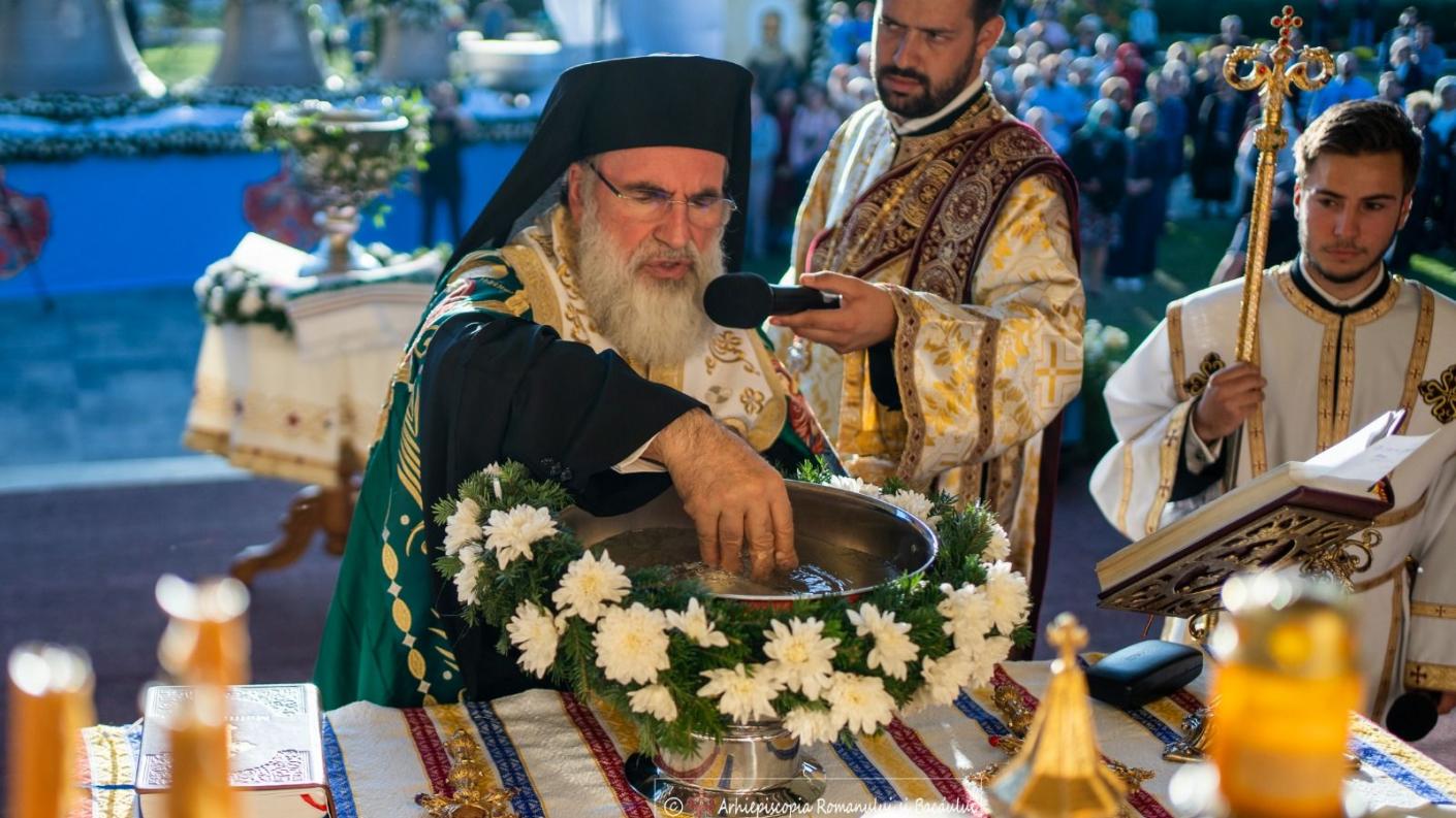„Astăzi începe o altă istorie, un alt sunet, începe o altă rugăciune, o altă chemare și de aceea am venit cu toții să auzim mai întâi chemarea acestor clopote turnate la Innsbruck în Austria. Sperăm ca în câteva zile să fie montate și amplasate în turnul de la intrarea în incinta Centrului eparhial în ziua de pomenire a Sfântei Parascheva, cinstită atât de mult de romașcani și băcăuani. Credem că Sfânta Parascheva a făcut o minune pentru că aceste clopote au fost aduse și sfințite tocmai când începe efervescența credincioșilor care sunt pelerinii care pendulează în toate părțile pentru a ajunge la moaștele Sfintei Parascheva de la Iași, dar și la Catedrala din Roman unde vor fi întâmpinați cu sunetele acestor clopote închinate acestei Sfinte și celorlalți sfinți ierarhi care au fost canonizați de Biserica noastră străbună și care se vor ruga lui Dumnezeu pentru noi pentru faptul că pe fiecare clopot este icoana lor și care vor fi mijlocitorii și ascultătorii rugăciunilor noastre pe care le vor purta ca pe o tămâie cu bun miros înaintea Tronului Preasfintei Treimi”.